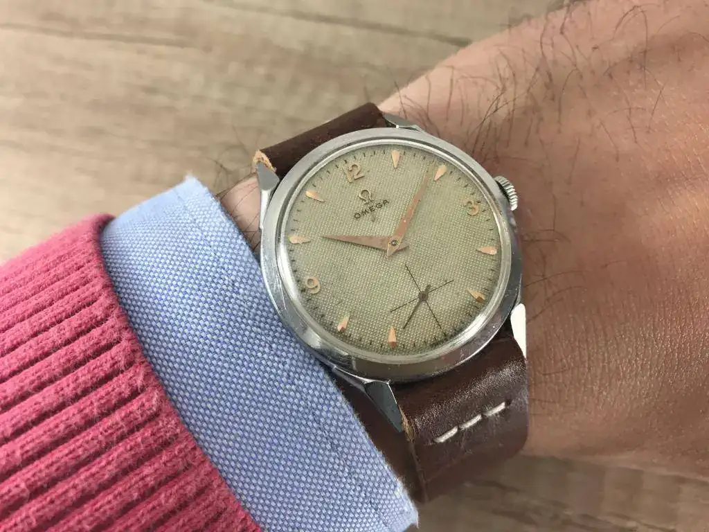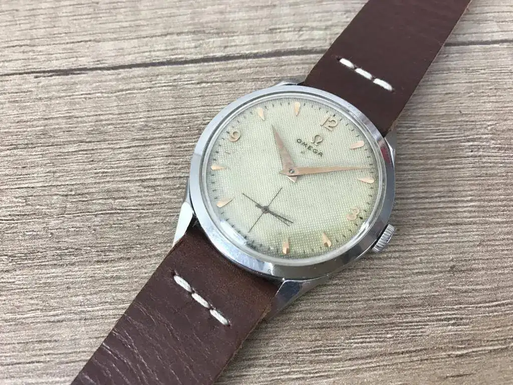 Buenas, por tener uno prácticamente igual con este tipo de esfera guilloche tan buscada en los Omega vintage. Calibre manual y en estado original con su corona y demas