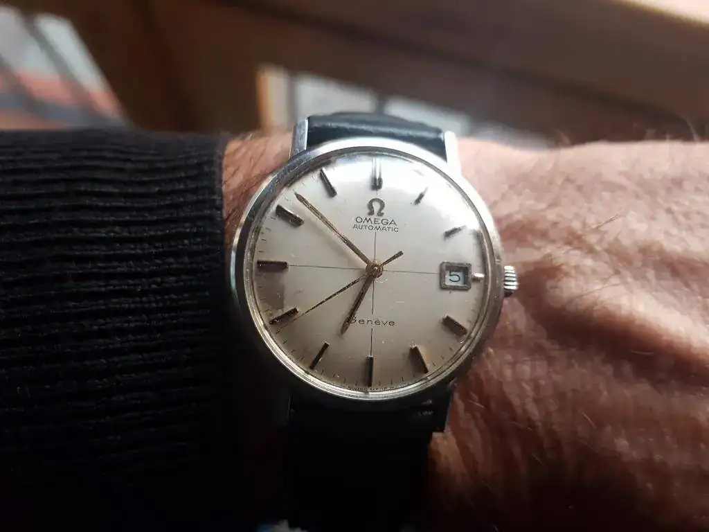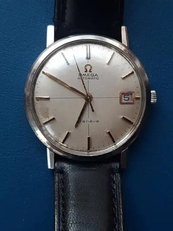 Hola a todos. Por falta de uso, pongo a la venta este Omega vintage que monta el superfiable calibre automático 565. La marcha del reloj es bastante buena y el estado general más que aceptable para un reloj que puede tener la friolera de 45-50 años. La esfera tiene un "desconchón" entre las 8 y las 9 como podéis comprobar. La corona es Omegapero la hebilla no es original y la correa está aún como a un 80%. Por higiene yo las cambio siempre, pero eso a gusto del consumidor.