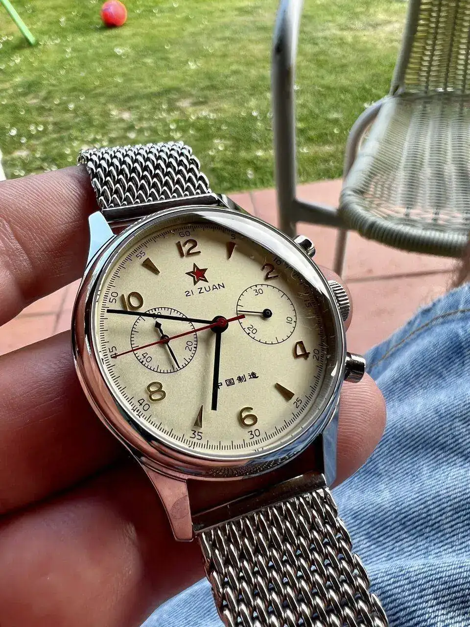 Pagani desing PD-1701 Speedmaster moonwatch Hommage es un reloj de 40mm en su versión V3 (mejor para mi muñeca) con complicación de fecha y movimiento VK63 quartz movement, que es un híbrido entre mecánico y de cuarzo al llevar todo el reloj en cuarzo salvo el crono que es mecánico según tengo entendido. Las ventajas es que vale la mitad (120) en amazon españa o (80) en aliexpress, el cristal es de zafiro y el bisel de cerámica y por supuesto viene con un armis de calidad decente según dicen los compañeros del foro y las reviews de youtube.
