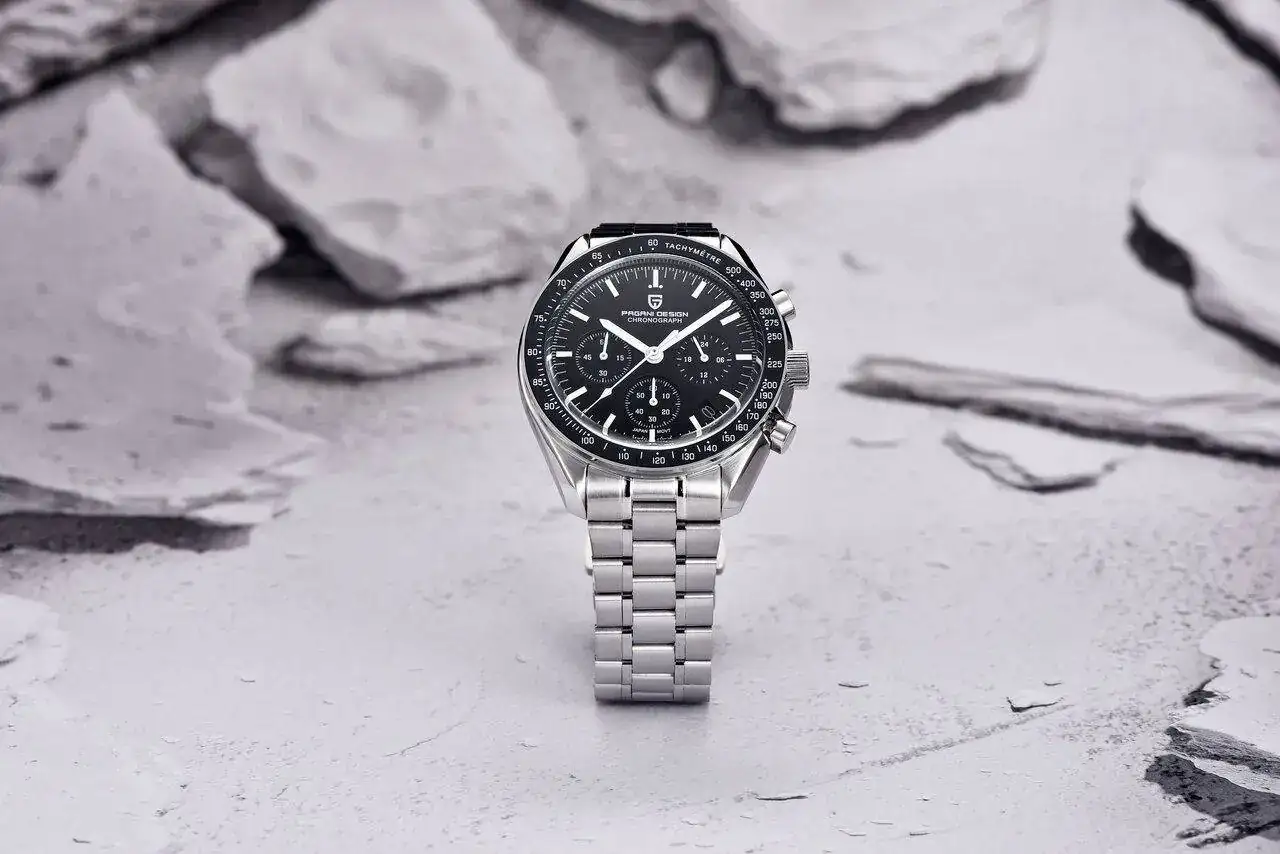 Pagani Design Moon Reloj de Pulsera Homenaje Reloj cronógrafo de Cuarzo para Hombre, Movimiento Japón VK63, Pulsera de Acero Stianless 100 m, Resistente al Agua, Reloj Deportivo : Amazon.es: Relojes
