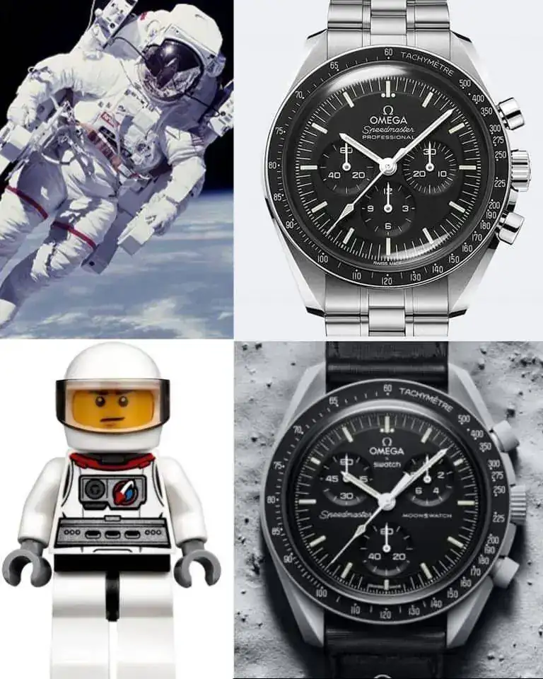- Está claro que modelos imitando a modelos caros es buena estrategia de marketing, si no no la harían. En mi cabeza la extrapolo a fakes y homenajes, creo que a la industria relojera de lujo les favorece. Y creo que la razón es que la gente que posee un auténtico Moonwatch se va a sentir mucho más orgulloso.