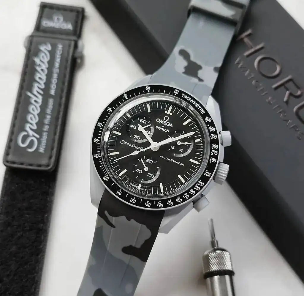 Han abierto un destacado, en su web, que dice "Moonswatch collection". Pero son básicamente, las correas de goma (carísimas) que tienen para el Speedmaster.La empresa Horus Straps, muy conocida ofreciendo correas para AP, Rolex, Richard Mille etc. Ofrece correas para este Swatch. Imaginate hasta donde a llegado este reloj...