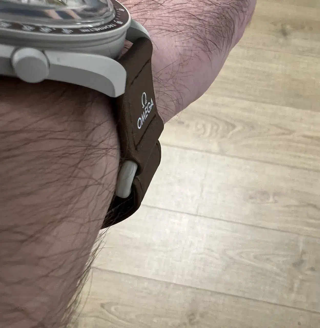 Yo le he dado la vuelta. Para mí tiene más sentido al revés. No sólo me resulta más cómodo porque la hebilla sobresale menos y se adapta mejor al hueso de la muñeca, es que para ponérmelo me resulta más cómodo. Puedo sujetar el reloj por la correa contra el pecho para luego abrocharlo (como hago siempre).