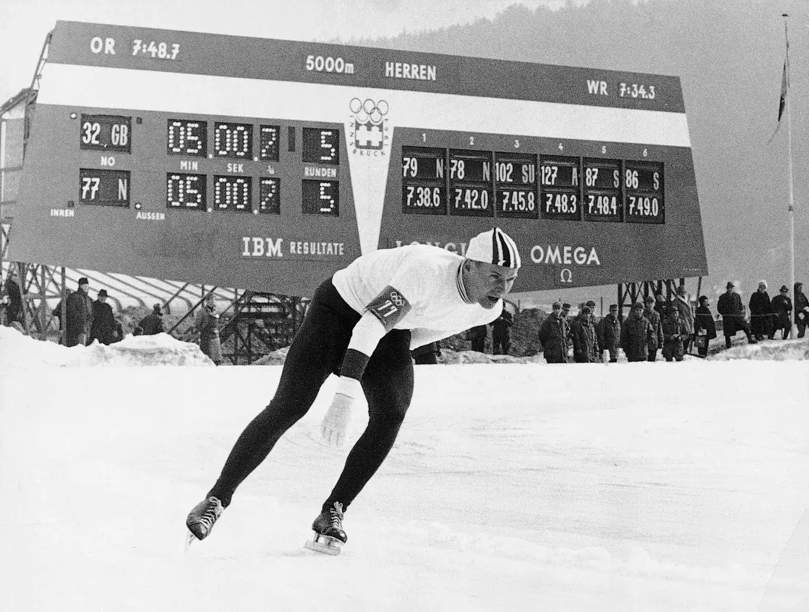 1964, Innsbruck. OMEGA presenta su nueva tecnología Omegascope. Este nuevo equipo introdujo el concepto de información deportiva “en tiempo real”, al sobreimprimir en directo los tiempos de los atletas en la parte inferior de la pantalla. Nunca se había informado con tanta rapidez sobre los acontecimientos a los espectadores que se encontraban fuera de un recinto.