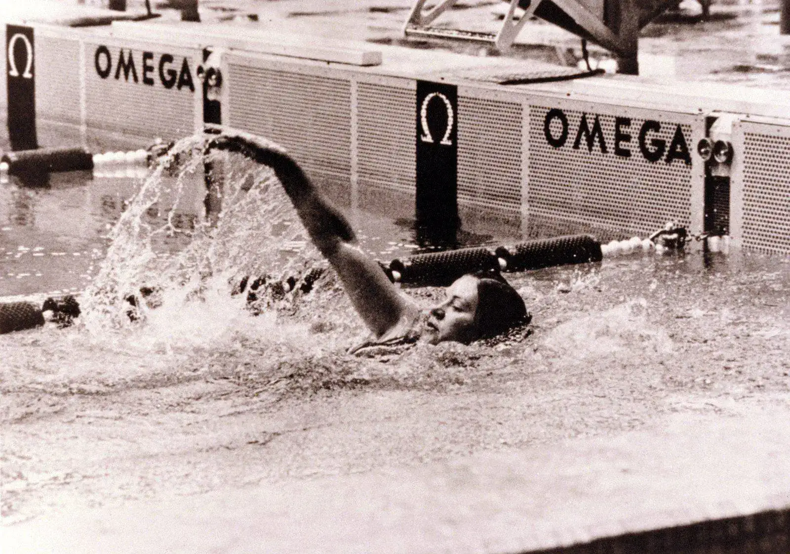 1968, México. La llegada de los touchpads de piscina de OMEGA se considera uno de los momentos más importantes de la historia del cronometraje. Medían 90 cm de alto por 240 cm de ancho y dos tercios de su superficie estaban sumergidos en el agua. Reaccionaban al más ligero toque, de modo que cuando un atleta llegaba a su meta podía detener el tiempo con sus propias manos. Ya no se podía discutir la precisión de los resultados en la natación.