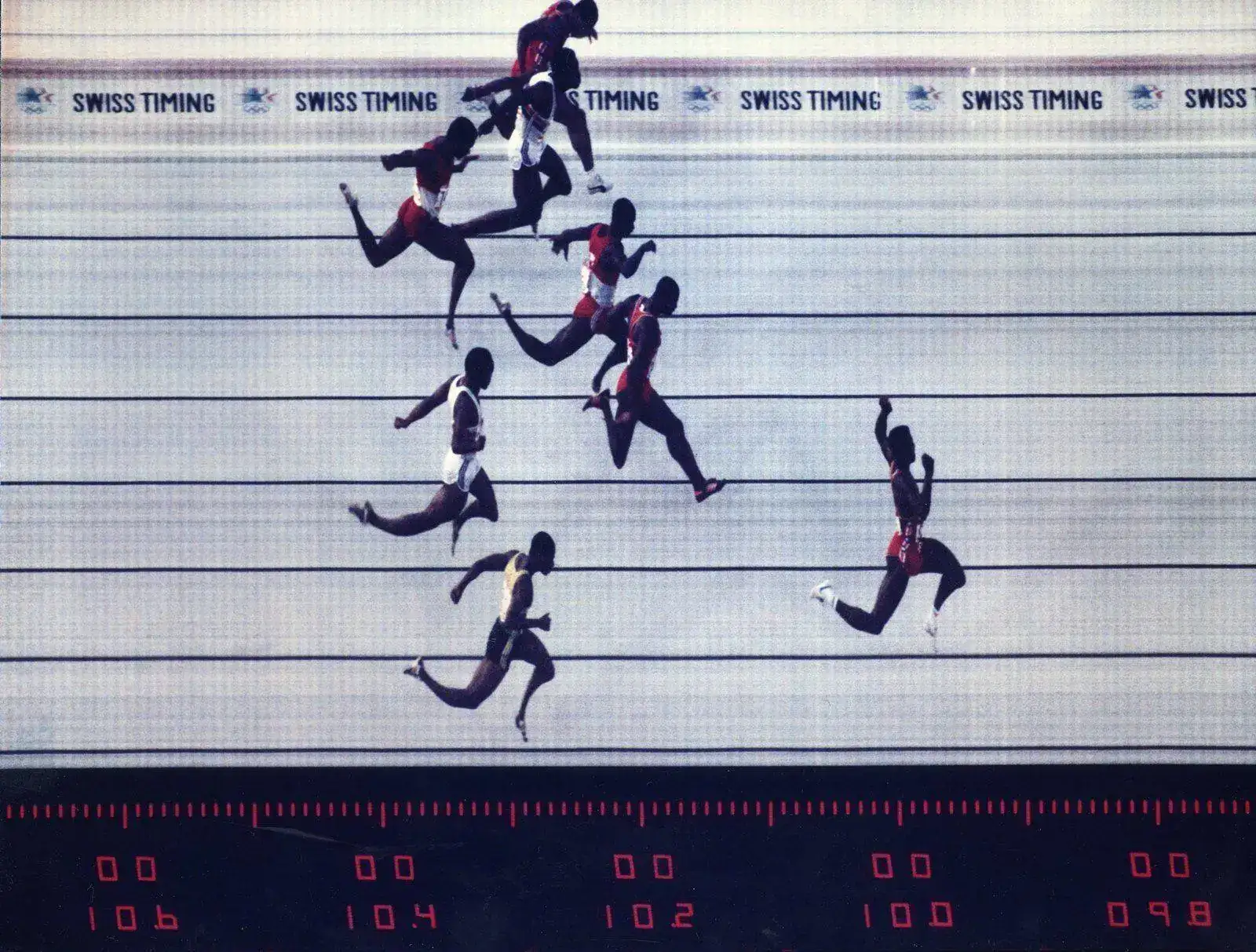 1984, Los Ángeles. Los Juegos Olímpicos de 1984 fueron notables por una serie de actuaciones atléticas memorables, incluidas las cuatro medallas de oro ganadas por el estadounidense Carl Lewis. En la pista, OMEGA hizo sus propios avances en cronometraje al introducir el primer dispositivo de detección de salidas falsas. El equipo funcionaba mediante la medición de la presión que cada corredor ejercía contra el bloque de salida. Cuando el atleta se lanzaba hacia adelante, su tiempo de reacción se activaba por su fuerza física, lo que permitía detectar una salida en falso.