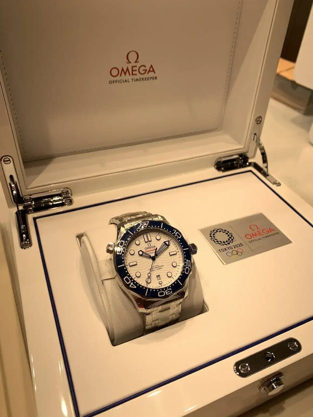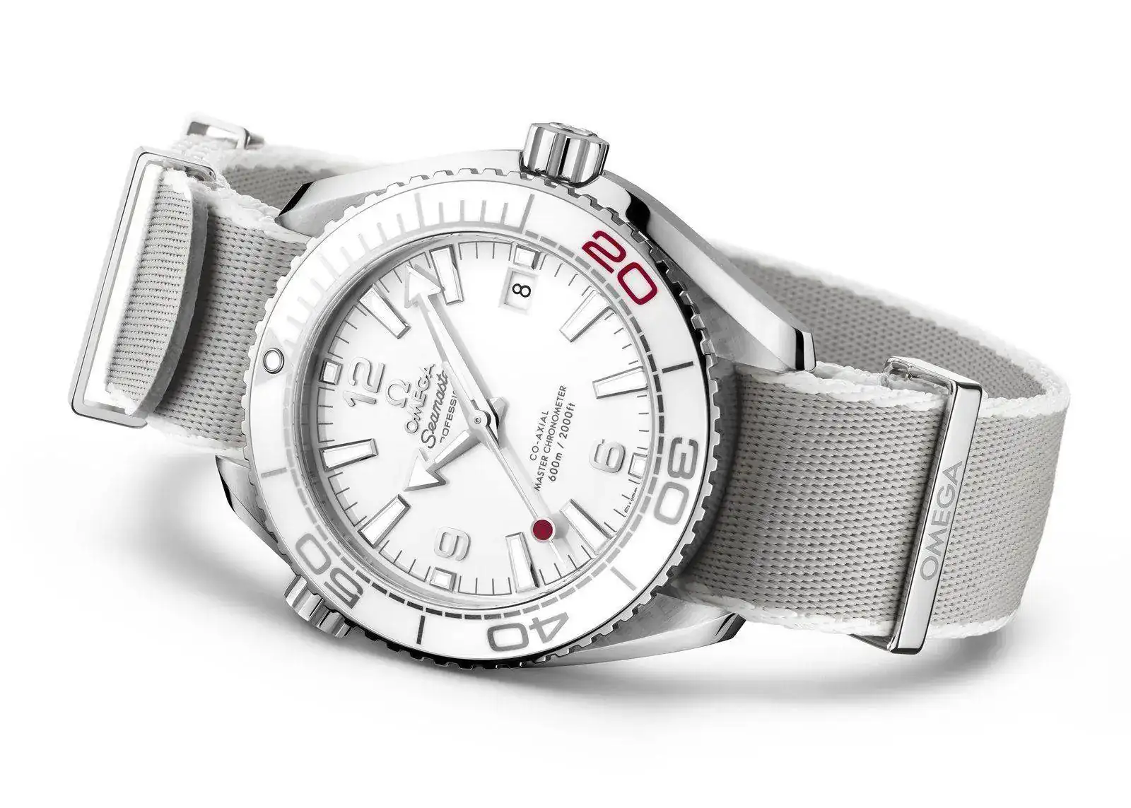 También es rojo el extremo "lollipop" de la segundera central que, sobre el fondo blanco de la esfera, representa la bandera de Japón. Limitado igualmente a 2020 ejemplares, monta el calibre OMEGA Master Chronometer 8800 y luce un fondo de caja en cristal de zafiro con el emblema de Tokyo 2020 transferido. Se entrega con una pulsera de piel blanca e incluye un brazalete de acero noble y una pulsera NATO adicional en su estuche de presentación.