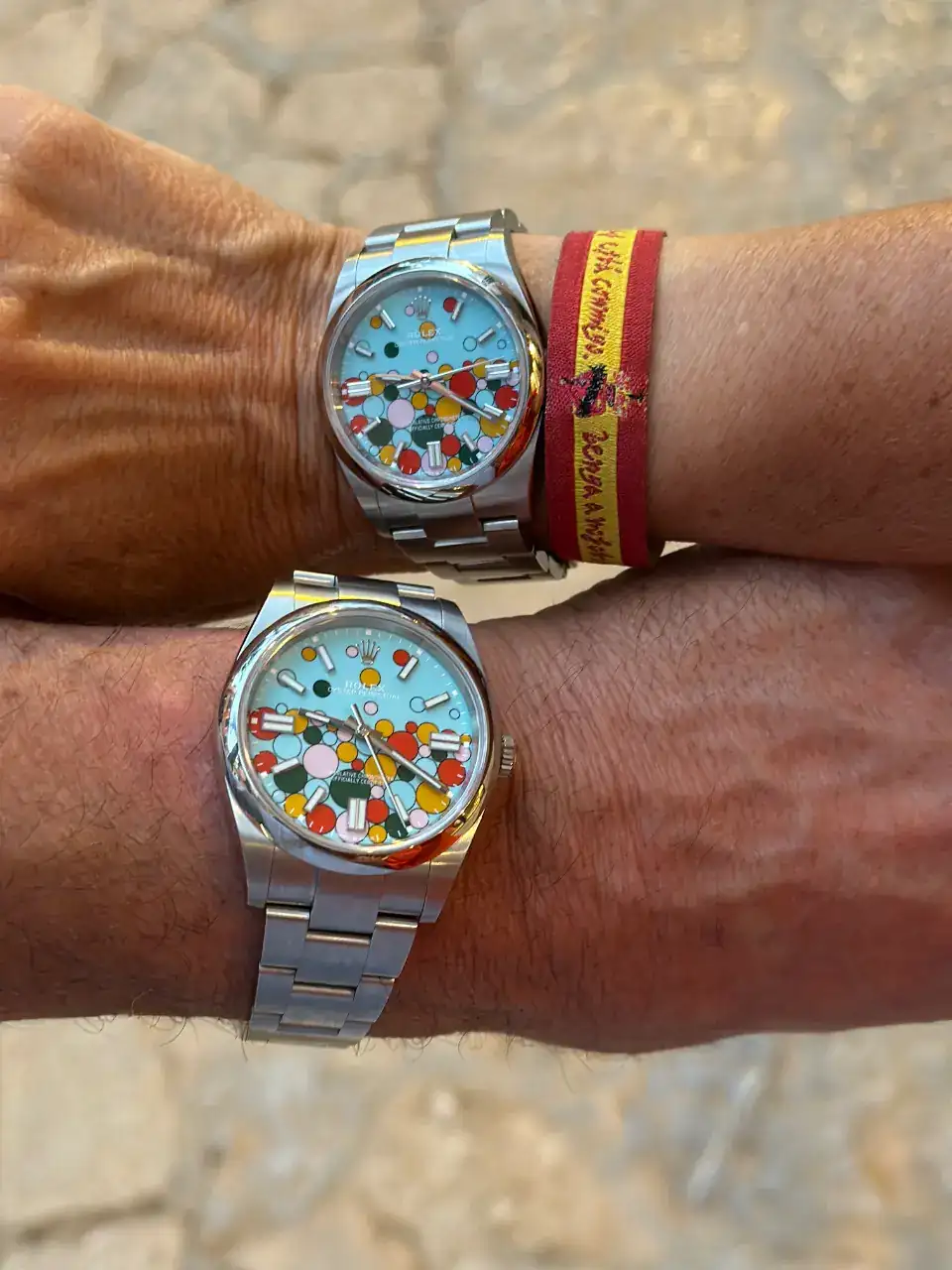 El reloj es una pasada y en vivo gana muchísimo. Además si se puede disfrutar en pareja es una caña y todo el mundo pregunta por ellos. Aquí un 36 y 41. Teniendo los dos recomiendo los 41 porque se ve todo el esplendor de los colores de la esfera.