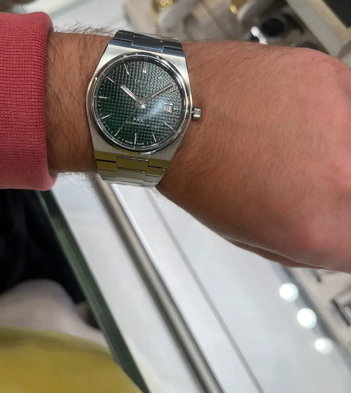 Te regalaron el PRX de cuarzo en azul, pero te gusta el color del modelo automático de dial verde, pero no quieres el Powermatic 80 porque ya tienes un Certina con ese calibre.