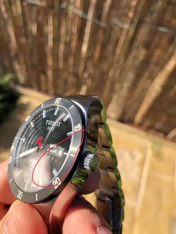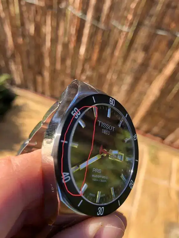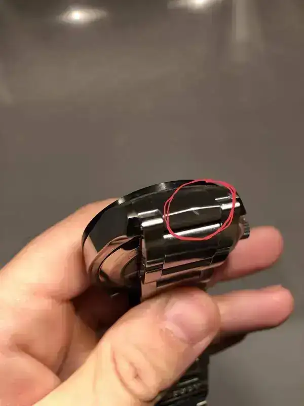 El resalte del cristal en un lado mas que en otro no se si se apreciara en las fotos pero al tacto canta muchísimo. Pienso que no puede ser un defecto de fabrica por que esos fallos son inadmisibles en un reloj de esas caracteristicas.