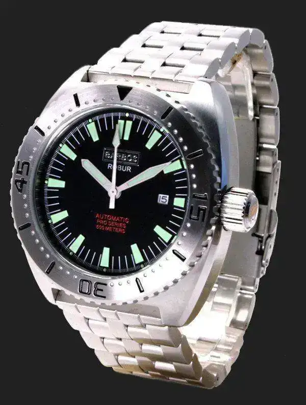 Yo ayer mismo compré un Barbos Robur (dial negro) en una puja de eBay por 75€+15€ de envío desde Alemania. Supongo que llegará la semana próxima. Aparentemente tiene muy buena pinta, Miyota 8215, 500m. Eso sí, es realmente contundente, 46mm de caja y casi un cuarto de kilo de acero 316L.