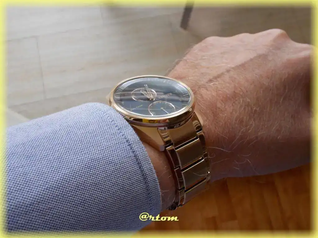 Hace tiempo que me está tentando hacerme con un reloj dorado , este que os muestro viene con un tratamiento PVD que sustituye los baños de oro que se le daban a este tipo de relojes. La cuestión es que hace unos años era frecuente que al alcanzar la edad de jubilación se comprase un reloj así. Han pasado de moda? Se siguen viendo en muñecas de señores de cierta edad? He de decir que estoy lejos de alcanzar la edad de jubilación pero me gusta esa estética tan clásica y elegante.