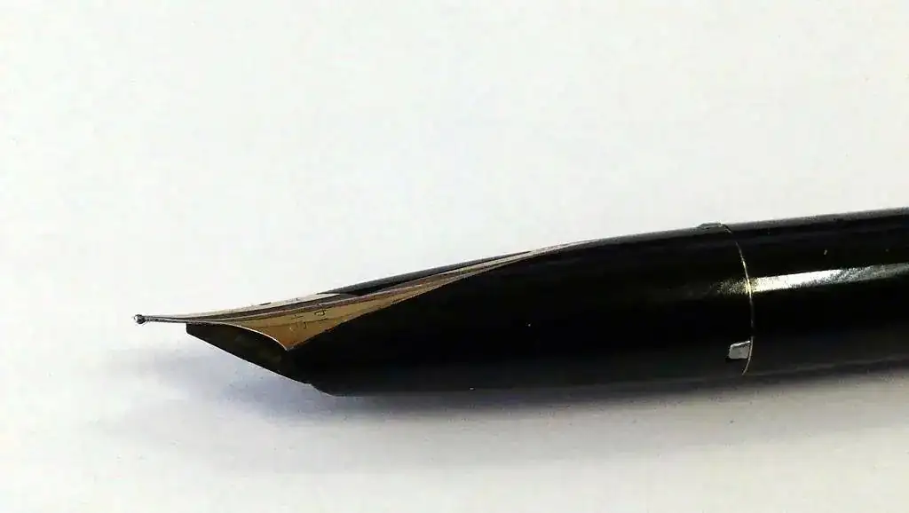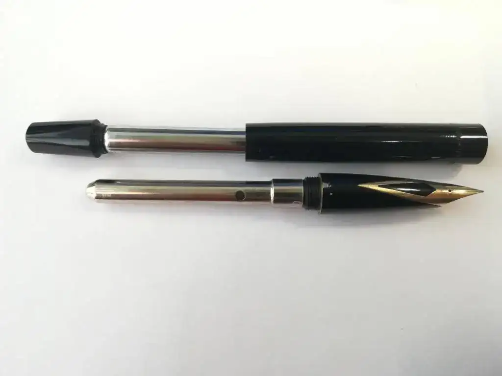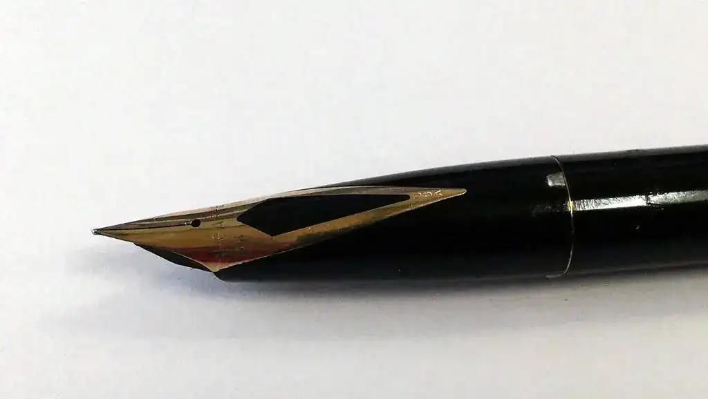 Utiliza un plumín integrado en la boquilla conocido como cola e golondrina, su conocido inlaid de Sheaffer. esta mas curvado que otros plumines inlaid y tiene cierta flexibilidad