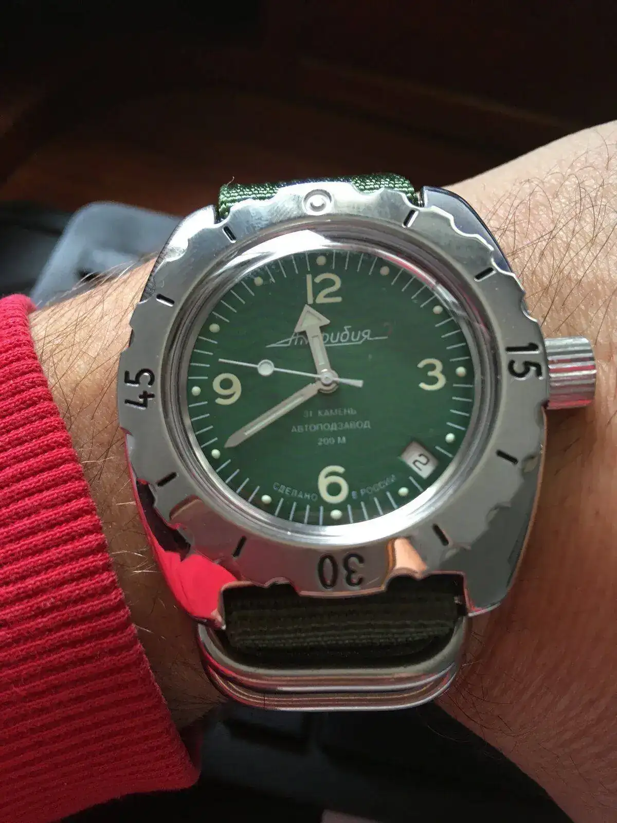 A mí la caja 150 me gusta un montón, me he montado uno con esta caja y, como dice Juanma, le sienta bien todo. Con armis queda muy bien porque el bisel tocho parece invitar a vestirlo de acero.Pues no te lo vas a creer, pero tenía ciertas dudas a pesar de haberlo comprado: la peculiaridad -que parece tan típica de Vostok- de montar la caja redonda encima de un casi rectángulo, que sobresale bien visible debajo de la caja, me echaba un poco para atrás, pensando que no me iba a gustar. Pero, leche, eso es precisamente uno de sus encantos.
