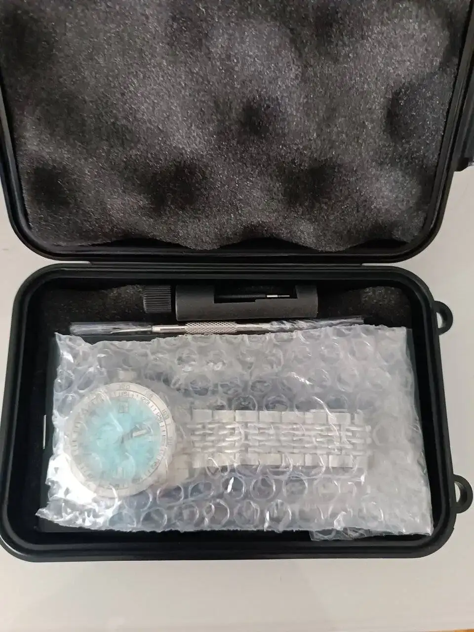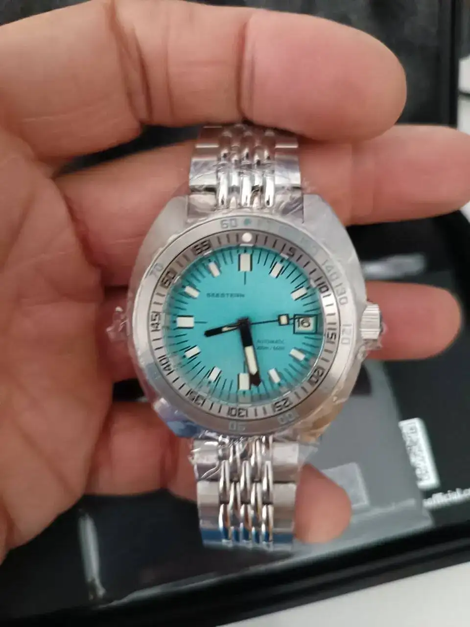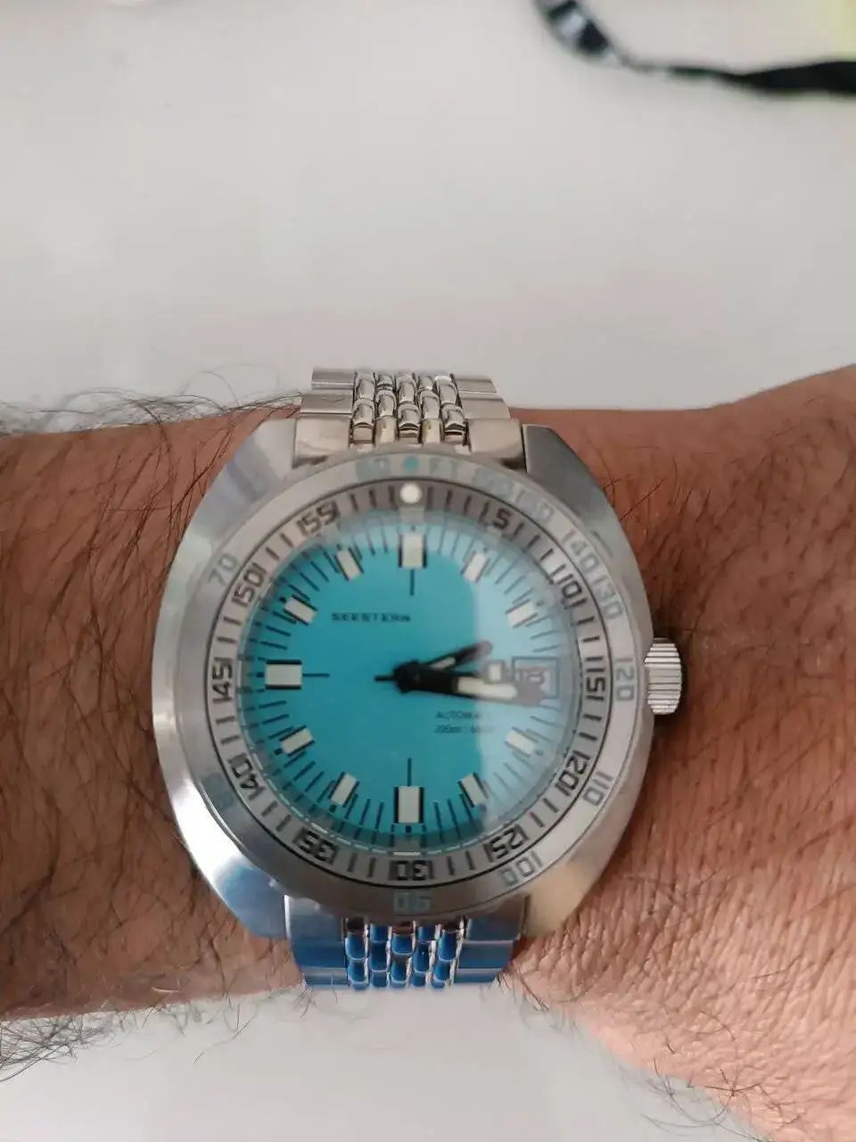 Perdona , ahora veo tu presentación, me parece un reloj muy bien hecho , ademas con este movimiento archiconocido no tendrás problema. A disfrutarlo !.Bueno pues lo prometido es deuda, como os consulté sobre este chinito, ahora que a llegado lo mínimo es presentarlo☺️, es un seestern color Tiffany con movimiento nh35 con la particularidad de que el dial es luminoso, tiene cristal de zafiro y un bisel de 120 clics, tiene una mínima holgura pero nada molesto, por 134€ me parece un relojazo para el verano y con una herméticidad de 200m (lo se fusila al doxa) pero la diferencia de precio es exageradamente grande por lo menos para mí, os dejo unas fotos del protagonista Ver el archivos adjunto 2848330Ver el archivos adjunto 2848331Ver el archivos adjunto 2848332Ver el archivos adjunto 2848333 Ver el archivos adjunto 2848334Ver el archivos adjunto 2848335