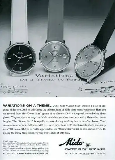 Publicidad del Ocean Star original de 1959, el primer reloj del mundo con caja monobloc.