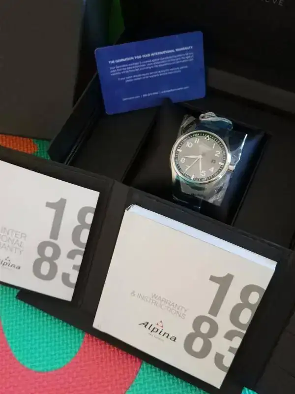 Se entrega con su caja de piel sintética, caja de cartón, libros, y con tarjeta de garantía de 2 años del establecimiento donde se adquirió, que es en Estados Unidos. Se entrega la factura de compra de fecha 14/11/2017.