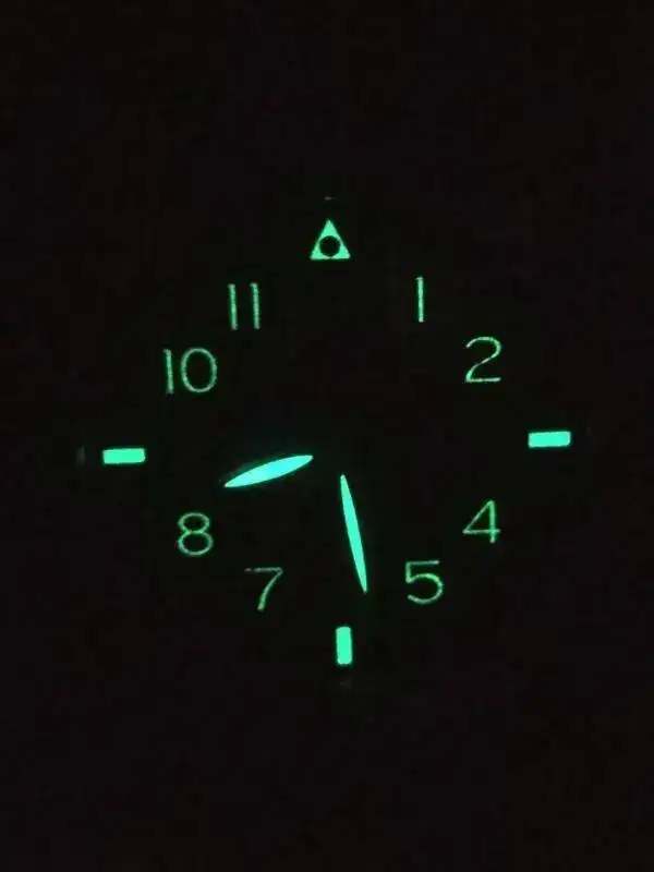 Los indices son aplicados con una generosa cantidad de material luminiscente, al igual que las agujas. Su visibilidad es excepcional en todas las condiciones.