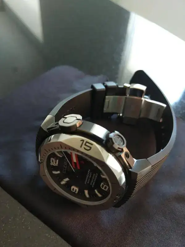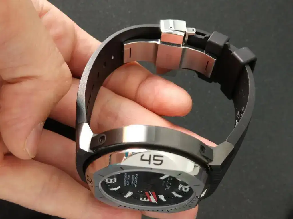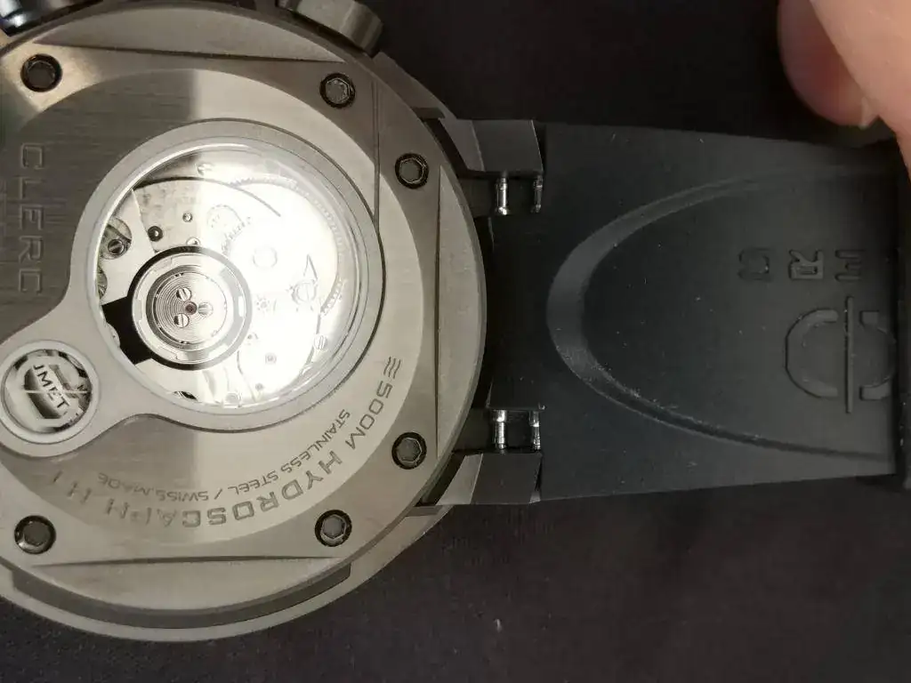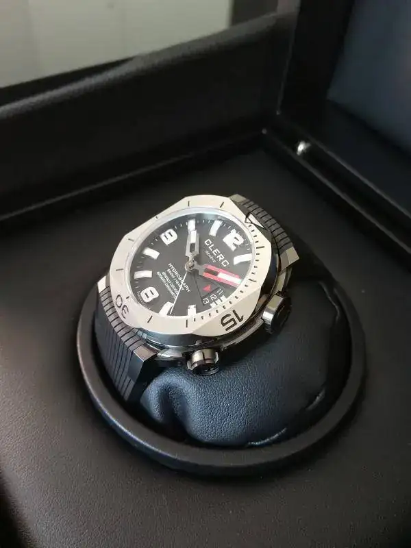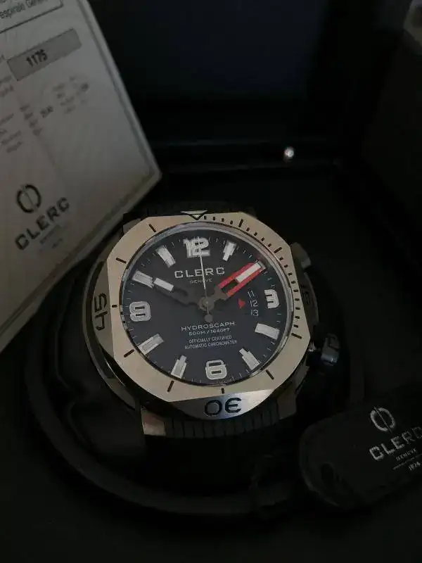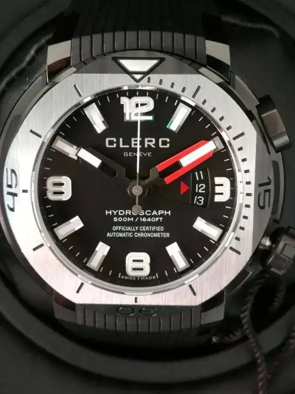 De la prestigiosa marca CLERC, fundada en 1874, una de las pocas familias independientes de la relojería suiza, este modelo Hydroscaph H-1, ha sido diseñado, fabricado y ensamblado íntegramente en Suiza por los mejores maestros relojeros y probado#en condiciones extremas.