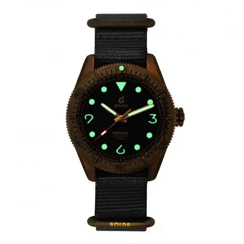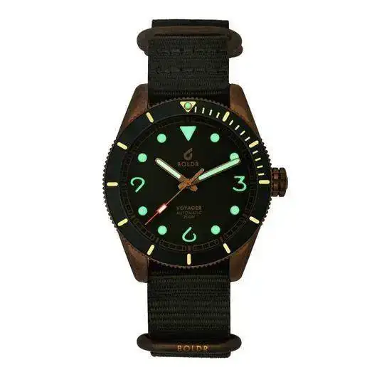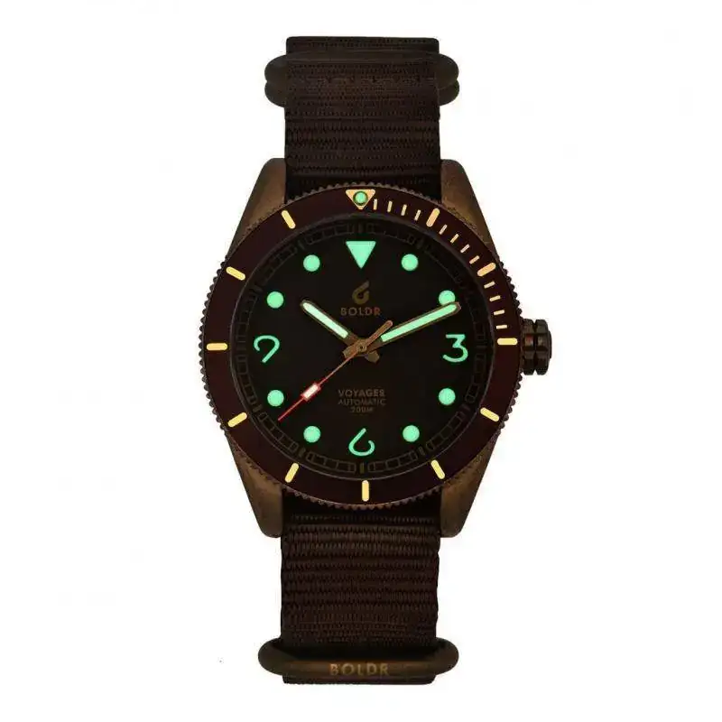 - Dial tipo sandwich con luminiscencia Superluminova "Old Radium" en agujas y marcadores