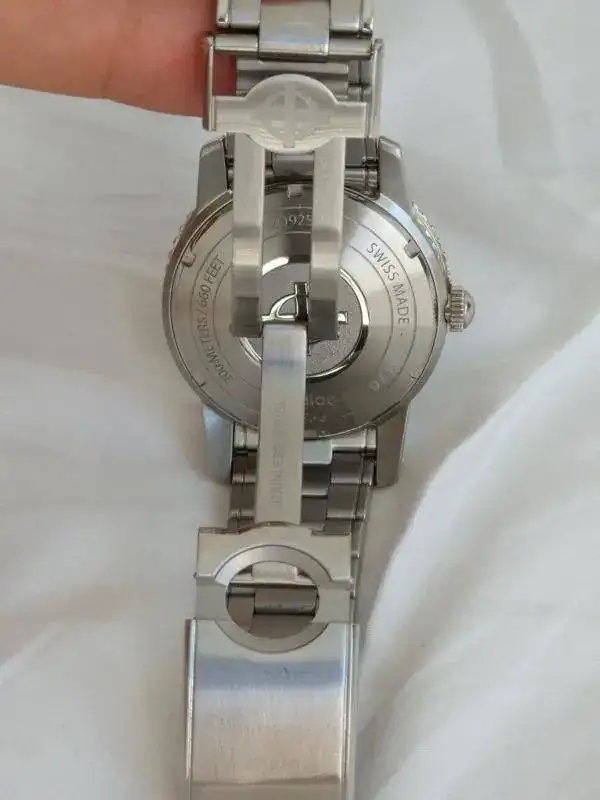 El reloj fue comprado en agosto de 2017 y se encuentra en un estado excelente, con las únicas señales de uso del cierre, unos pelillos superficiales que se pueden pulir por 20€, pero lo veo completamente innecesario. Ha sido MUY POCO usado.