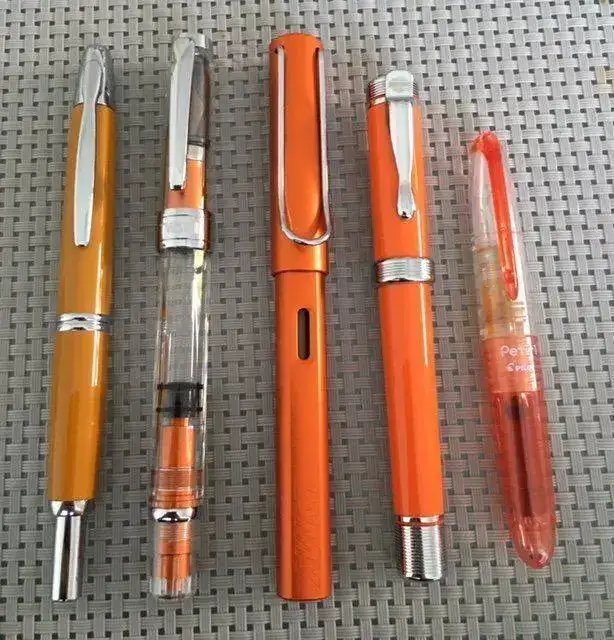 ¡Qué chulas! se ve que te gusta el orange 🙂 . Que recuerde ahora en ese color hay una pilot heritage, la twsbi vac700 y la delta dolce vita federico toda naranjita.