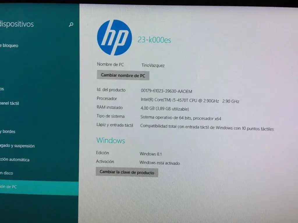 Vendo ordenador de sobremesa HP ENVY 23 pulgadas. Las características técnicas son las que adjunto en una de las fotos tomadas directamente del ordenador. Como peculiaridad, tiene la pantalla táctil y reclinable, algo que lo hace muy cómodo. Cuenta con teclado y ratón inalambrico, lo que no encuentro son las instrucciones por ningún lado y tampoco dispongo de la caja original. El ordenador ya no esta en garantia, puesto que hace mas de dos años que lo compre. El ordenador ha sido utilizado en poquitos ocasiones ya que utilizo el portátil y el tablet, motivo por el cual lo vendo, vamos que está nuevo. En fin, si se os ocurre alguna pregunta o queréis alguna foto solo tenéis que contactar. El precio 300 euros con envio MRW 24 horas. Un saludo.