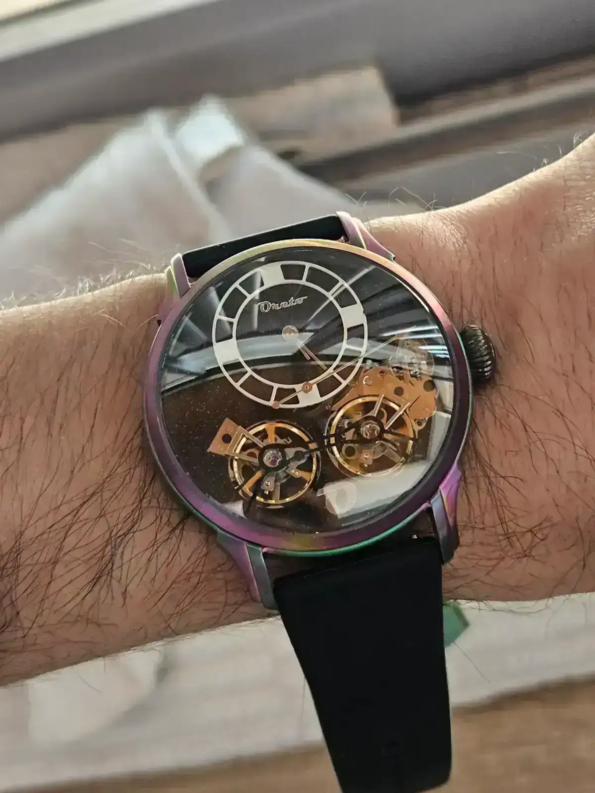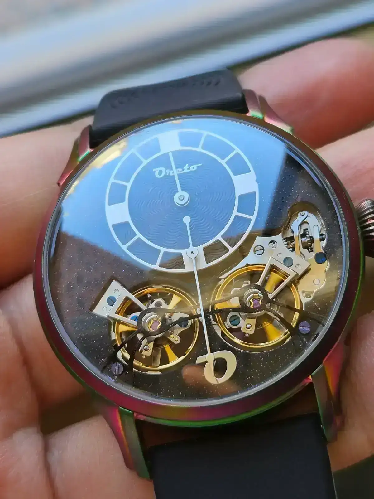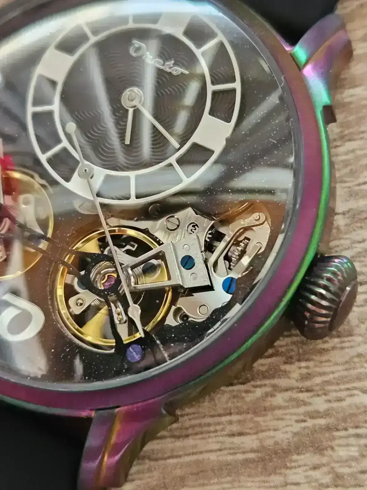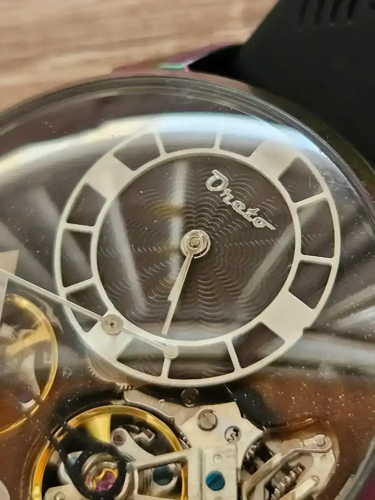 No obstante como digo, domo = reflejos. El domo de mi Le Dome Tourbillon lleva varias capas de anti reflectante, para que lo tengáis como referencia para comparar. Decir también que los Oreto son personalizables y se pueden pedir con cristal plano.