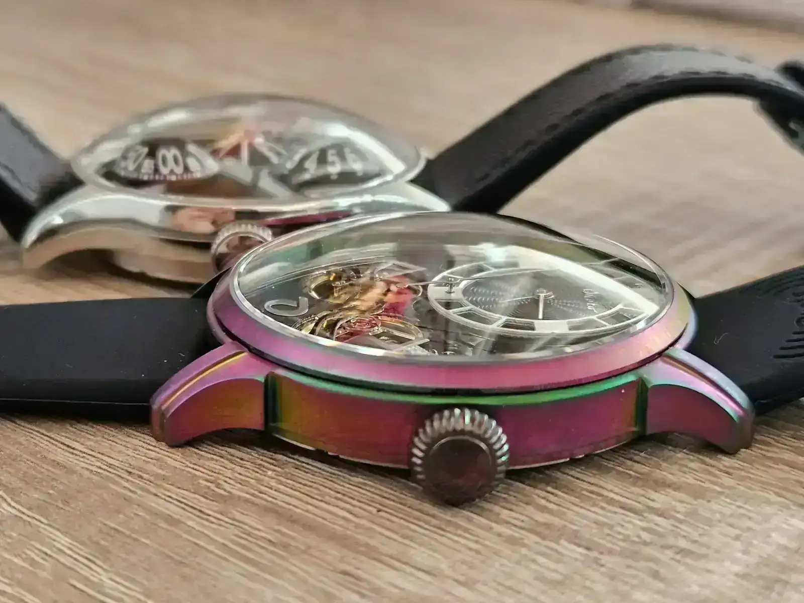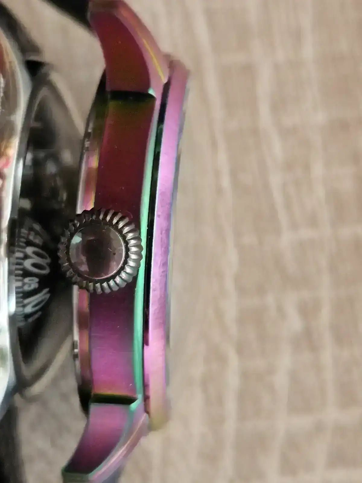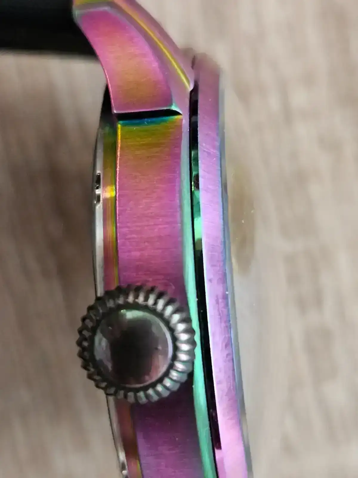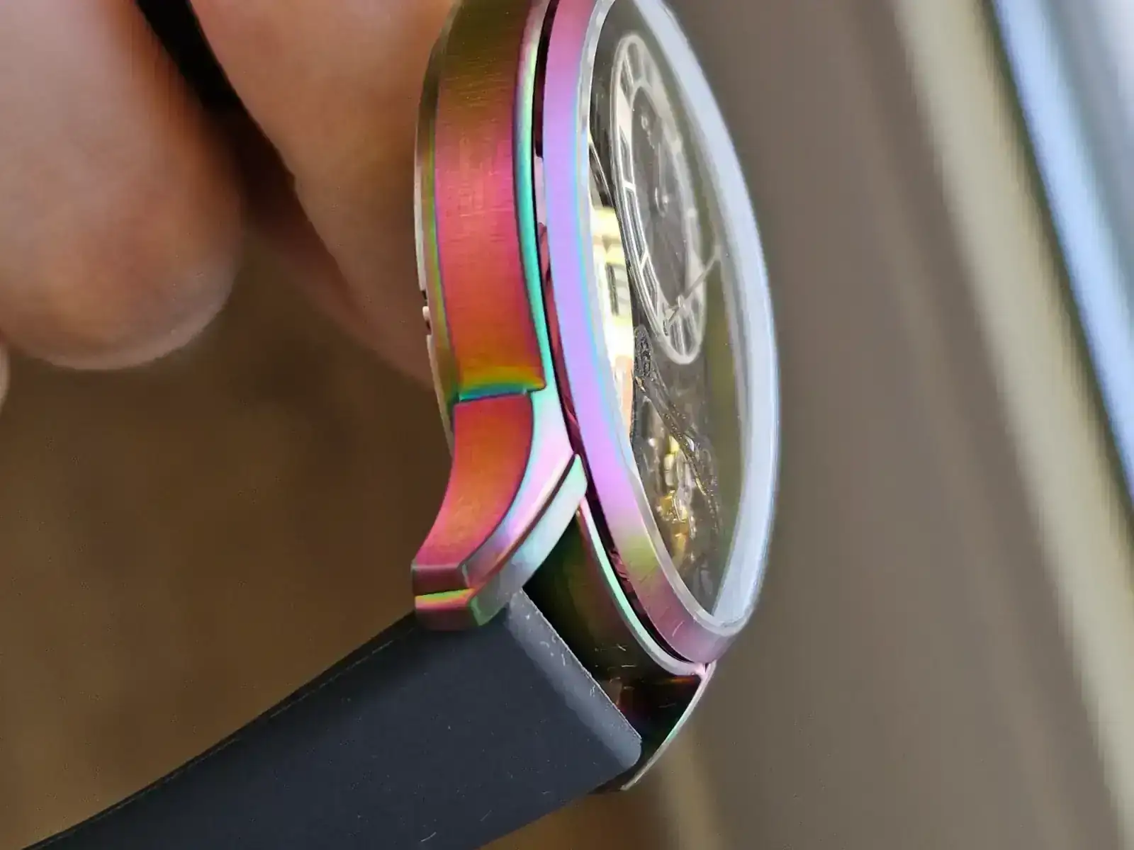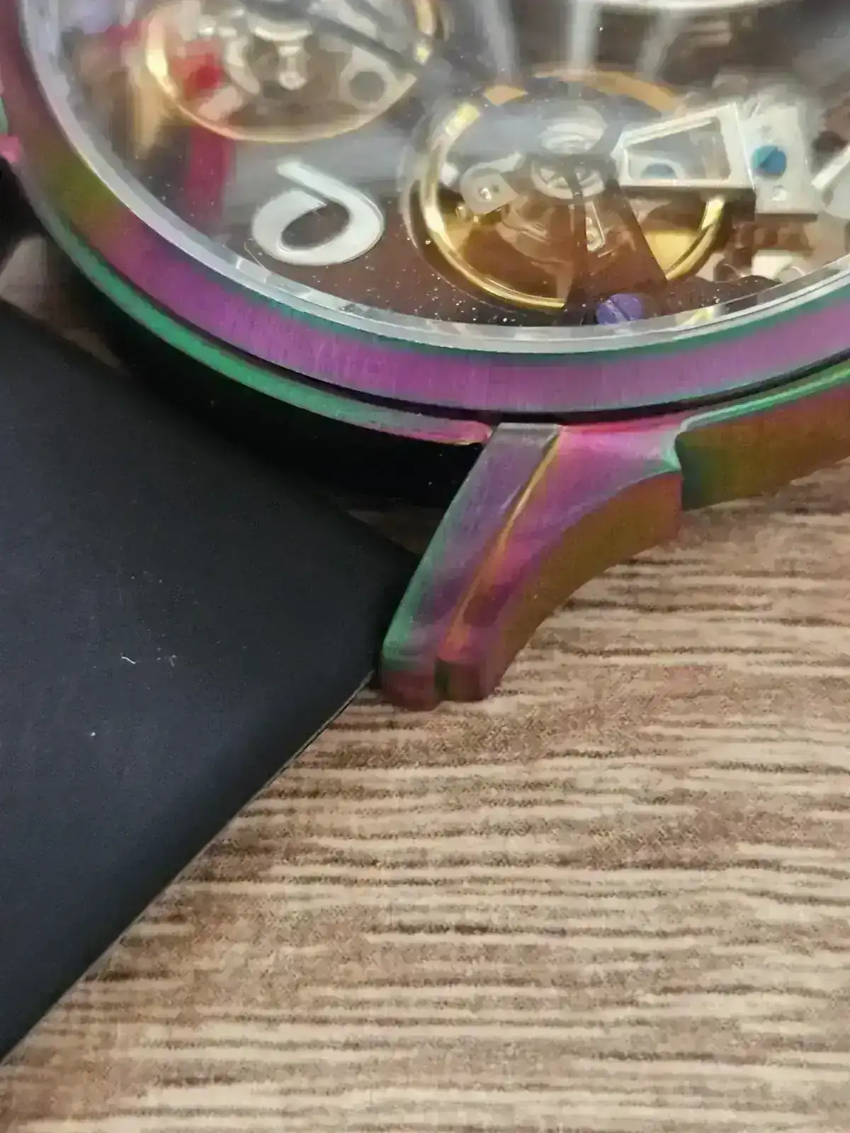 Dicho eso y entiendo que es una cuestión estética, sí me ha parecido interesante que la caja pueda venir con varios acabados PVD, y especialmente me ha gustado el acabado rainbow. Digo que es una cuestión estética y no técnica porque pulidos hay hasta en las cajas con PVD.