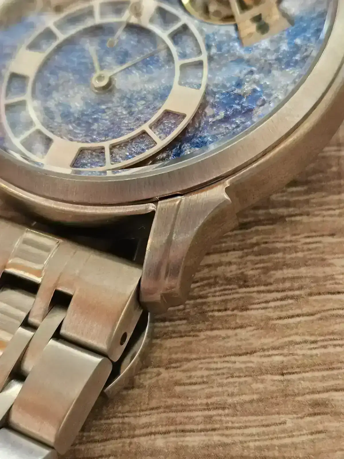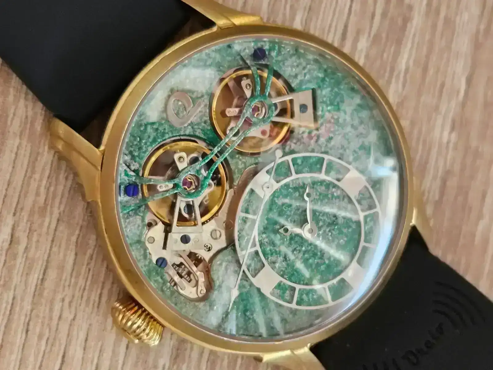 Creo honestamente que es un buen trabajo. Tiene textura, tiene un color negro con puntos brillantes, que recuerda a la aventurina pero con esa, como decía, textura añadida. No es fácil encontrar un dial pintado a mano y además, es único. Un valor añadido realmente interesante.