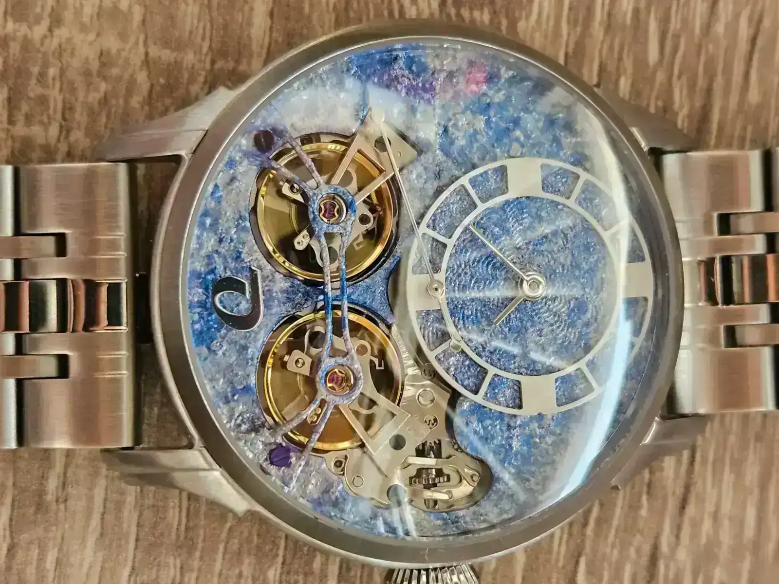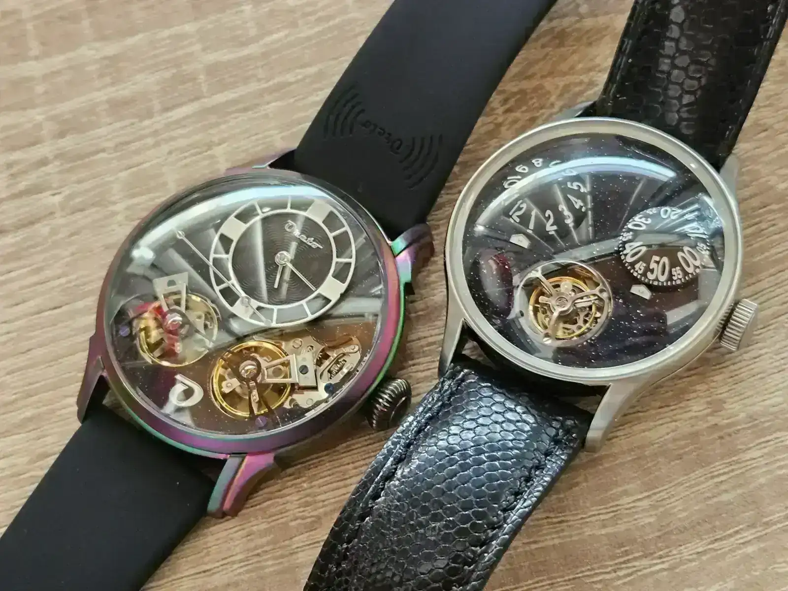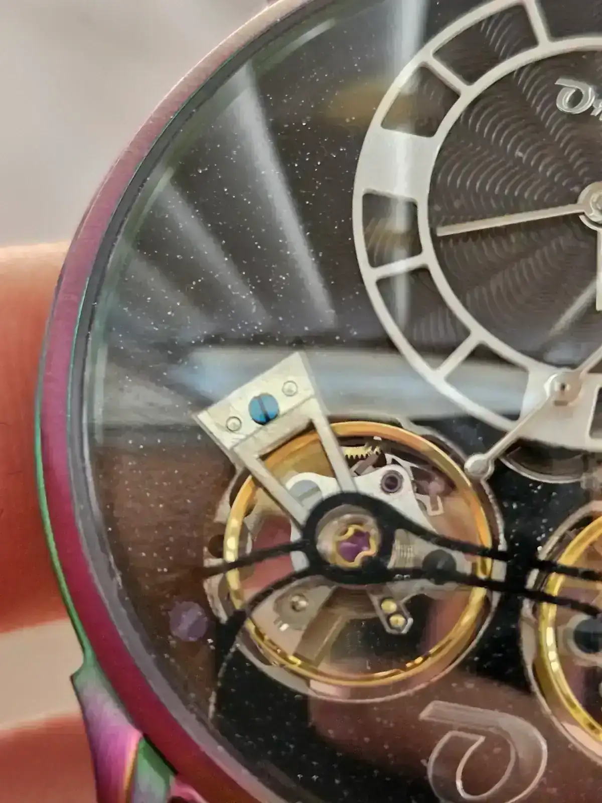 Hay que tener en cuenta además que solo uno de los dos escapes contribuye a regular el reloj, si bien ambos volantes oscilan al unísono. Pregunté a un amigo que tiene un Ailang doble escape de aliexpress y me comentó que al ponerlos en un timegrapher la frecuencia se lee como 43 mil alternancias porque los dos volantes no oscilan al compás. Los Oreto en cambio si tienen una lectura de alternancias correcta.