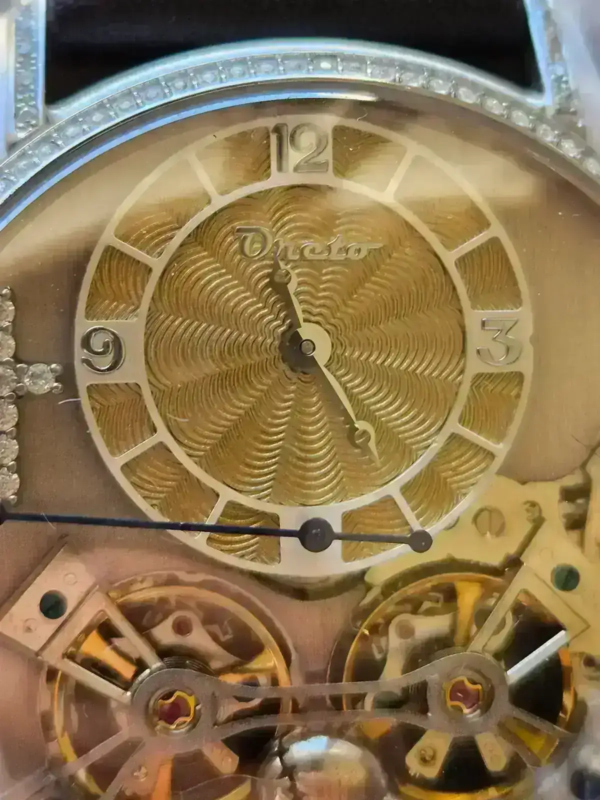 El calibre estándar es automático, y el de Oreto en cambio es de cuerda manual. Aparte de la reducción de espesor que se consigue al retirar el rotor, según David las ruedas inversoras del calibre tienen un defecto y por ello es más fiable si se retira la complicación automática y se convierte en un calibre de cuerda, y hablando de cuerda, el tacto es decente, no se siente como dar cuerda a un automático, pero parece no tener tope.