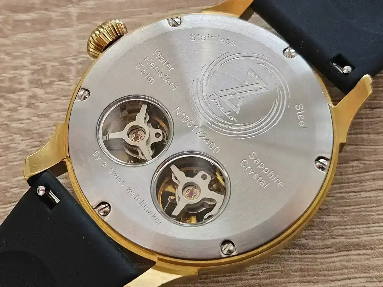 1. Oreto no solo tiene relojes con doble escape, sino que recientemente ha incorporado relojes suizos con calibres ETA como el 7750 o el 2824 y 2892. De hecho, pensaba que me mandaría también modelos suizos pero por cuestiones de stock, demanda y plazos no pudo ser, y escasos días antes de la quedada supe que serían cuatro modelos de doble escape.