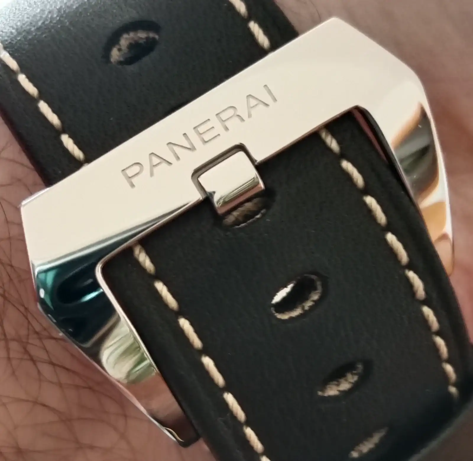 Me gusta la correa. Es una preciosidad. La anchura de 27mm en las asas es una verdadera pasada. Le da una proporción al aspecto del reloj tan razonable como atractiva. Me atrevo a decir que en un Radiomir con caja de 47mm queda algo menos proporcionado (la correa sigue siendo de 27mm) 🫣