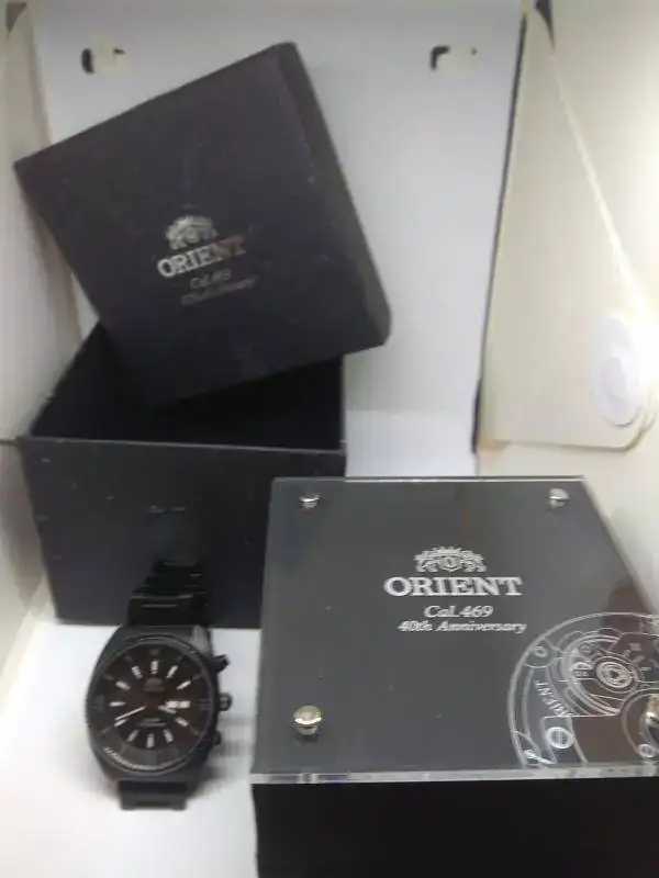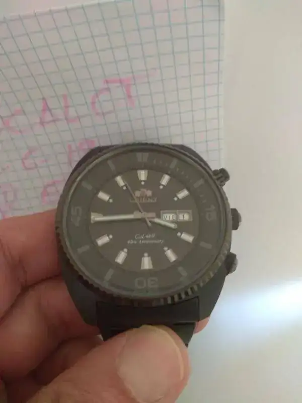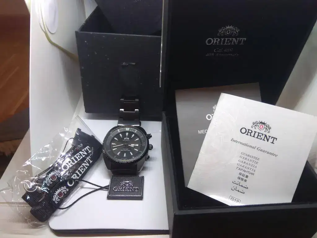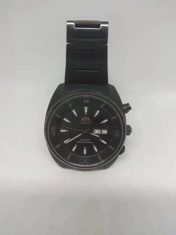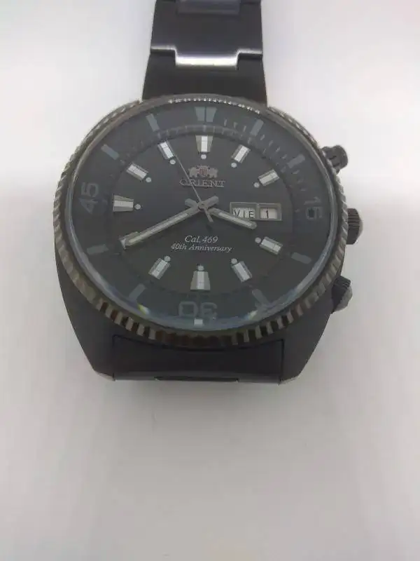 Pongo a la venta un espectacular Orient40th anniversary en PVD, una edición limitada que conmemora el 40 aniversario del mítico calibre 469 de la marca. Está hecho a reminiscencia del "King Diver" de los 70, pero con un tamaño actualizado de unos 45mm. Está en un estado excepcional, salvo dos toques pequeños en el cristal uno a las 5 y otro a las 6, que apenas se nota, por lo demás práctcamente nuevo sin pelos ni en la caja ni en el armis, el PVD de Orient es espectacular.