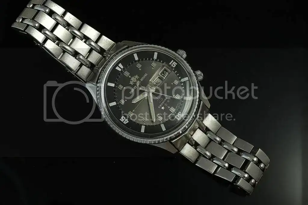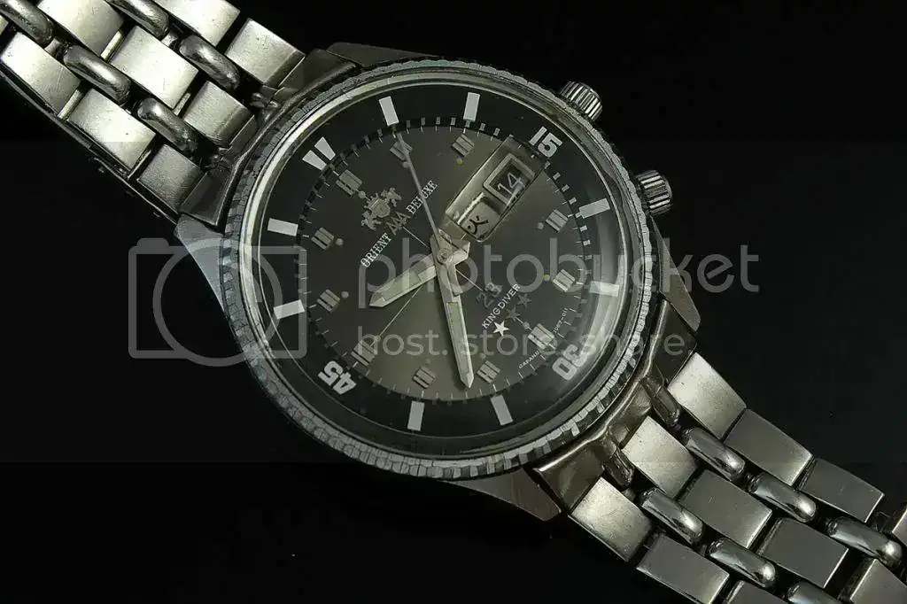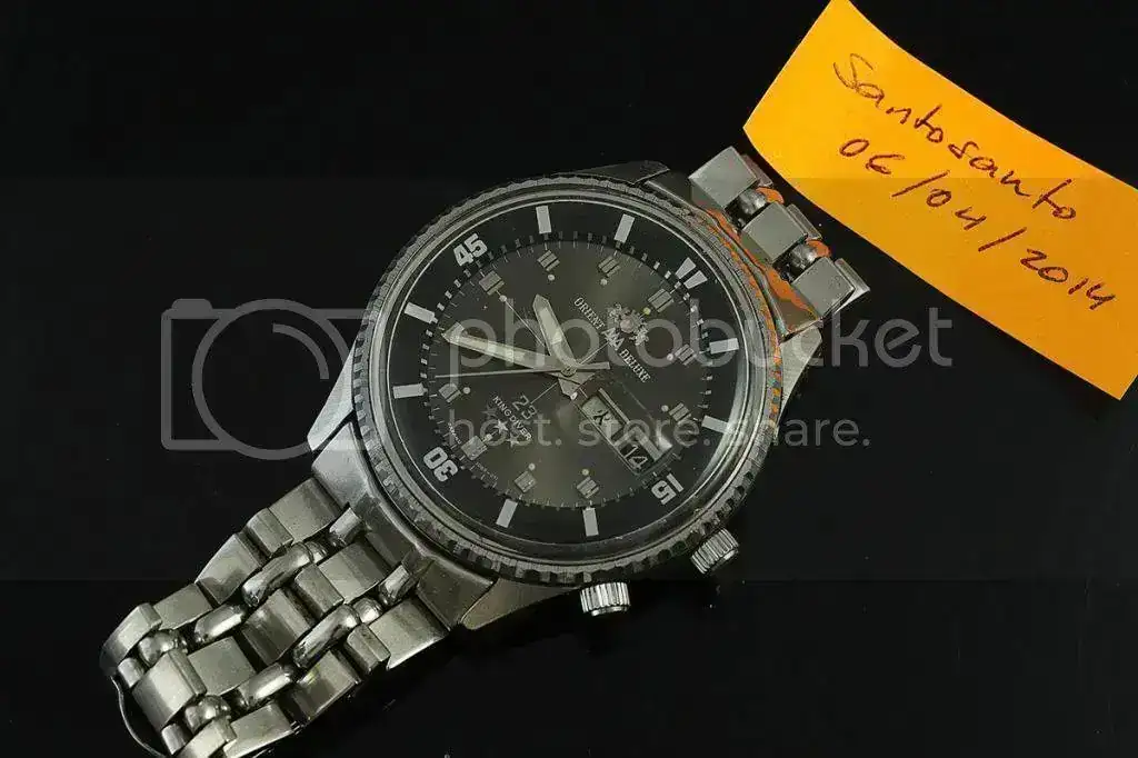 Vendo este Orient AAA DeLuxe "King Diver" con 23 rubies. Una pieza fabricada en los 70's muy difícil de ver con esta configuración. En este caso, sólo fabricada para el mercado japonés (el día sólo está en Kanji). Otra curiosad es que aún conserve el brazalete original, con extensión de buceo. Para muñecas de máximo 17-17,50cm.