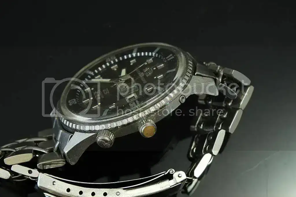 Nunca lo he mojado y evidentemente lo desaconsejo a no ser que le hagas hermeticidad. Con 42mm de diámetro sin corona y un ancho de asas de 22mm lo hacen uno de los pocos relojes de la época con medidas más que actuales. Calibre automático. Su marcha a día de hoy es muy buena, aunque ignoro el servicio que ha recibido ya que yo lo poseo desde hará algo más de un año.
