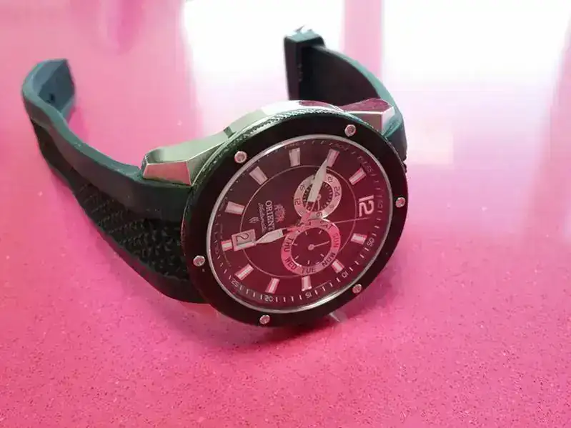 Hola, pongo a la venta uno de mis pequeñines por reestructuración de la colección ya que hace mucho tiempo que no me pongo. Lo compré en Enero de 2011, soy el único propietario y no tendrá más de 20 puestas. Como se puede ver en las fotos, correa de caucho con muy poco uso, ningún rozón ni marca en la caja (de 42mm), muy buena marcha y con cristal de zafiro.