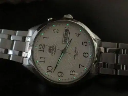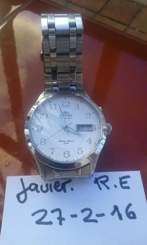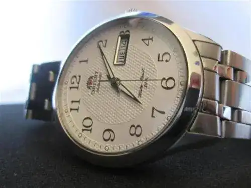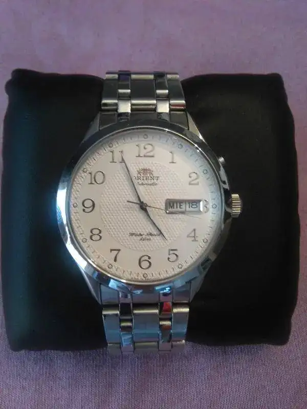 SIGO DEJANDO SITIO EN MI CAJA DE RELOJES PARA LOS QUE LLEGAN, LE TOCA A ESTE PRECIOSO ORIENT AUTOMATICO,FUNCIONA PERFECTO,38,5mmSIN CONTAR LA CORONA PERO EN MUÑECA PARECEN 40mm SERA POR EL TIPO DE BISEL Y ESFERA BLANCA,CUIDADISIMO COMO NUEVO, CON DOCUMENTACION DE COMPRA EN RELOJERIA NACIONAL.PRECIO 95 EUROS NO INCLUIDO EL ENVIO Y POR FAVOR NO CAMBIOS YA QUE TENGO A LA VISTA LA PROXIMA COMPRA QUE SE ME HA ANTOJADO