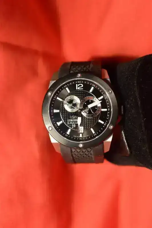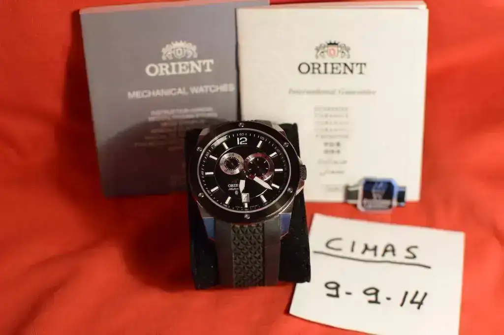 Saco a la venta este Orient Automatico con muy pocas puestas en muy buen estado, caja de 42 mm, tiene el cristal de zafiro, tiene 100 mts. WR, corona roscada y tiene muy buena marcha, calendario a las 6 y en las subesferas marca el dia de la semana y las 24 horas, caucho de 24mm. ligeramente recortado porque era enorme, tiene sus papeles pero no tiene caja, aunque se enviara debidamente empaquetado.