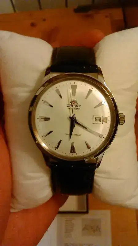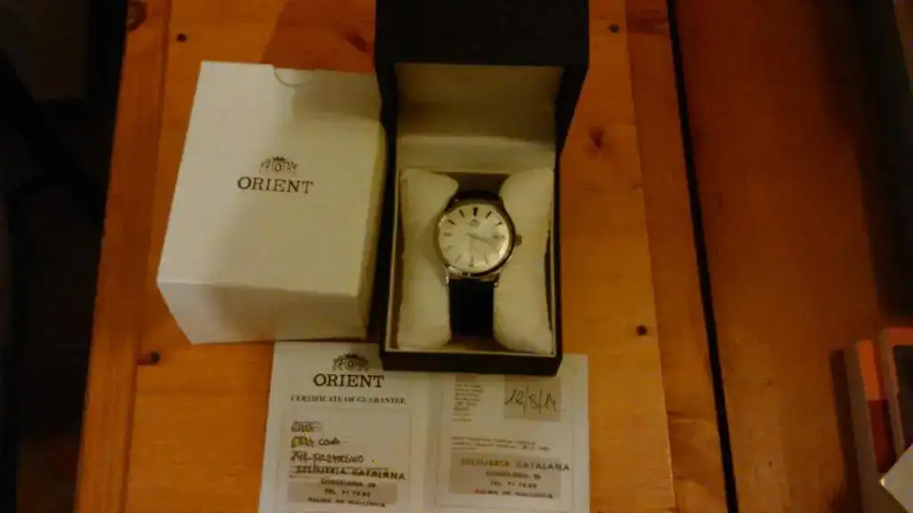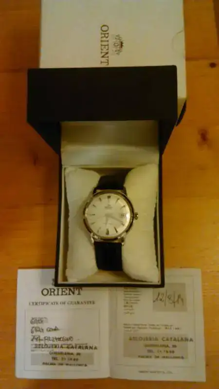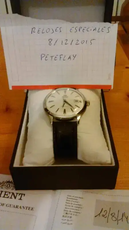 Pongo a la venta este estupendo Orient Bambino, adquirido el pasado agosto de 2014 en CO físico (así que le queda mucha garantía). El reloj está impecable, ya que no me lo he puesto ni una vez. Lo compré para tener un reloj para ocasiones más formales, pero entre que no he tenido ocasión de ponérmelo, y los Reyes me han traído uno que me gusta más y que puedo llevar casi en cualquier ocasión, pues el Bambino, muy a mi pesar porque es un relojazo, se queda sin espacio en mi caja. Las fotos son algo bajas de calidad porque están hechas con el móvil, pero si queréis más fotos, o más detalladas, decídmelo y os envío las que queráis; he intentado que se vea el reloj en todos sus aspectos. Lo envío con sus cajas y toda la documentación más la garantía.