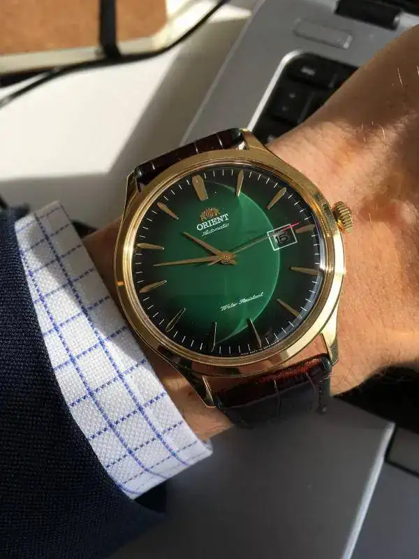 Gracias compañero, la verdad es que estoy muy contento con el, cuando le da el sol a esta esfera es algo que no se puede describir con palabras, es tan bonito....A mi me gusta este, con esas agujas pero en negro y también uno con la caja plata, los indices y las agujas en bronce y la correa suede marrón.
