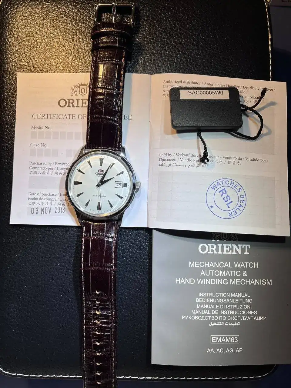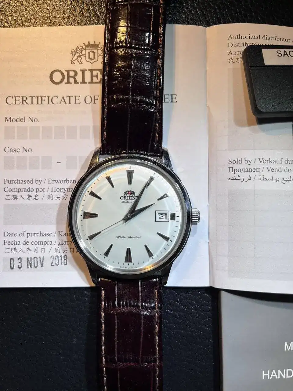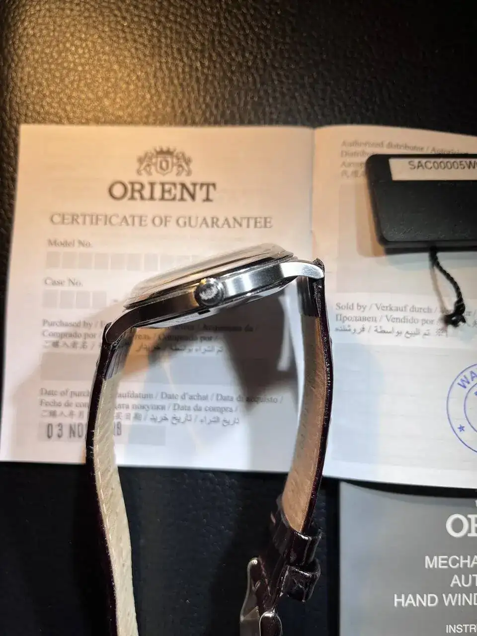 Movimiento: Orient F6724 automático, con parada de segundero y remonte manual