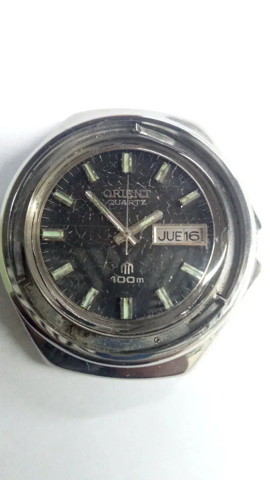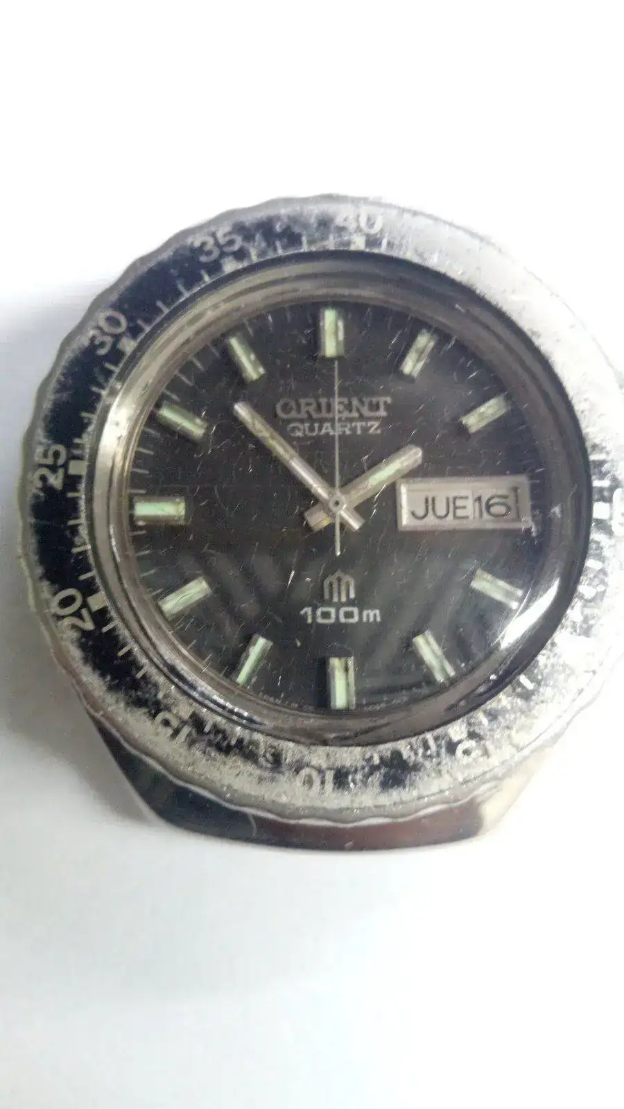 Hola grupo, me llegó este Orient a cuarzo muy maltratado al que ya le hice su correspondiente pulido de plexi(aunque tiene muchas batallas quedó aceptable),de caja y hasta la tapa que la quisieron sacar como si fuera una tapa a presión,imagínense como estaba.Pero lo que intento ahora es recuperar el bisel visiblemente en mal estado,y la bobina exitadora que es cortada mal.Ideas consejos son escuchados....adjunto fotos(soy de Argentina