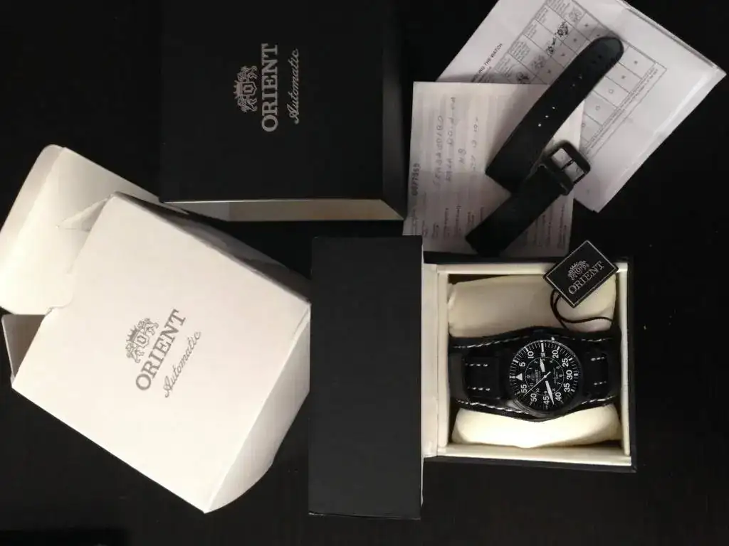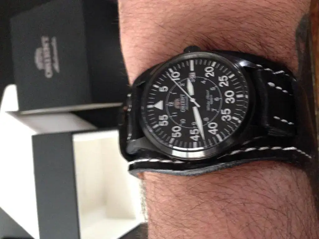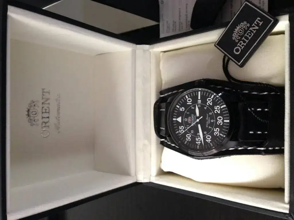 Hola vendo este ORIENT Flieger modelo FER2A001B automático y corona roscada resistente al agua hasta 100 metros esta en excelente estado.