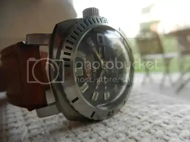 Ahora os presento brevemente a otro clásico dentro de los divers vintage. El menos conocido pero no menos interesante Orient King Diver 1000M. Un reloj con una caja contenida de unos 38mm, pero con un diseño espectacular y un acrílico abombado típico de la época. La caja recuerda a la de los Panerai, por ello se le conoce como el “Baby Panerai”. Esta caja suiza también fue usada por otras marcas de la época como Nivada. La trasera en este modelo también es muy llamativa y en el caso de mi unidad, todavía conserva parte de la pintura original. En definitiva, una pieza muy interesante en la colección.