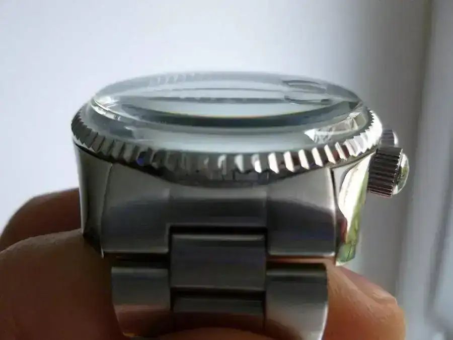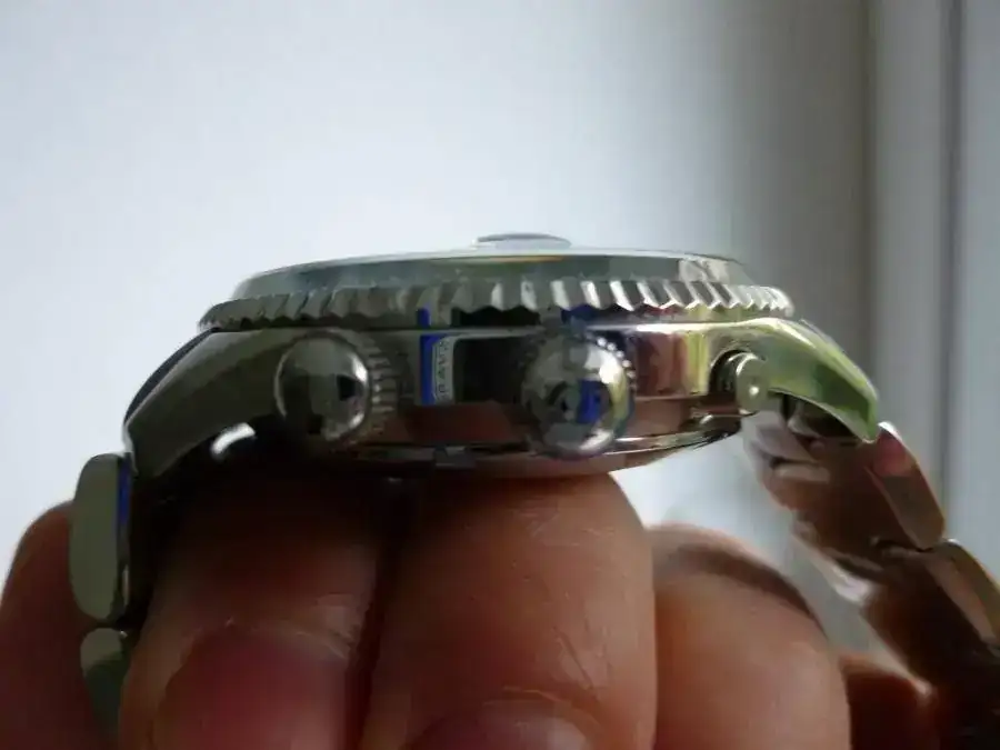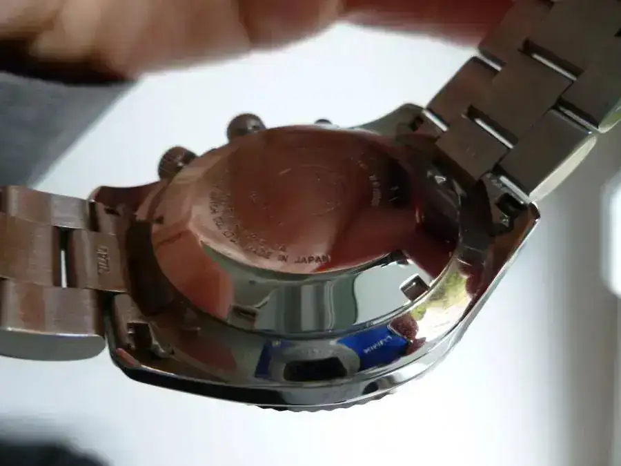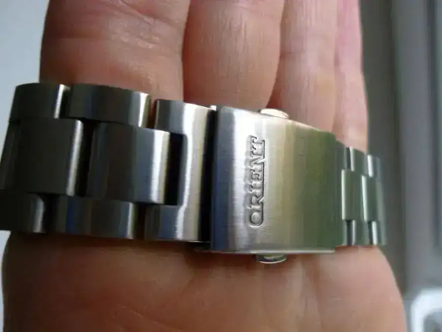 Tiene un tamaño de 42mm que parece algo mayor al ser el bisel interior y ocupar el cristal toda la caja, cristal mineral, movimiento automatico Orient, corona a las 4 para girar el bisel interior, pulsador a las 2 para pase rapido del dia de la semana quue esta en ingles y kanji.