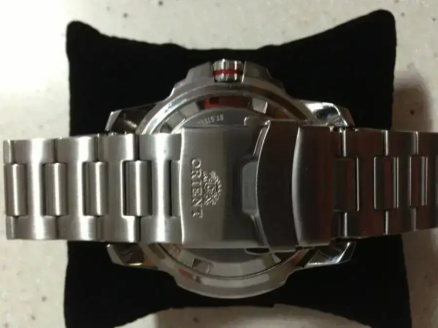 - Mecanismo de relojería mecánico: ORIENT calibre 40N5A hecho en Japón.
