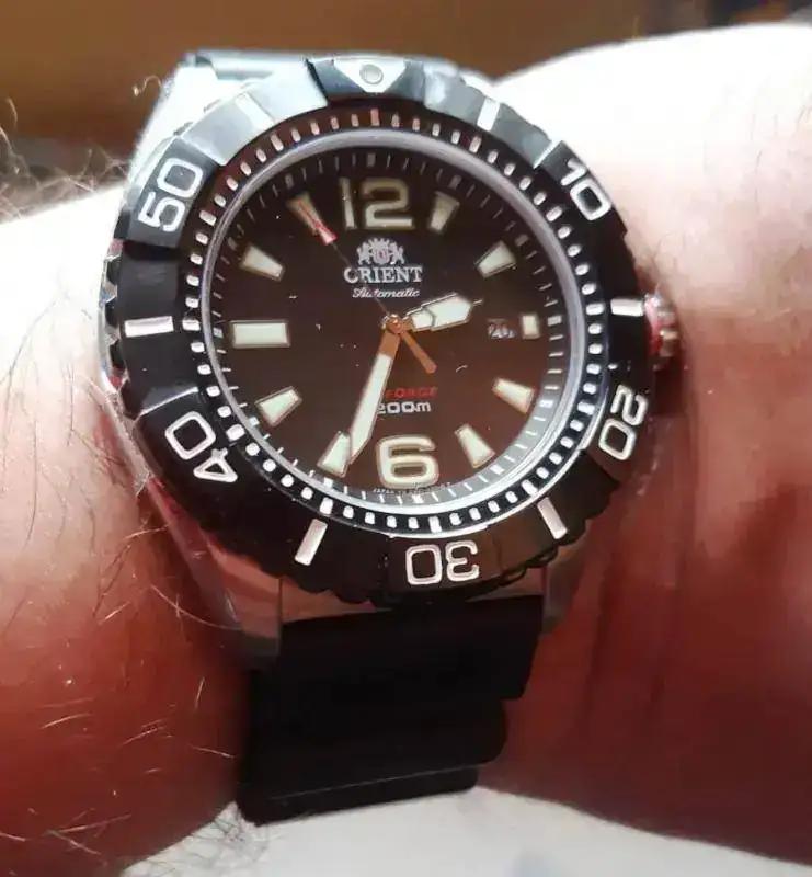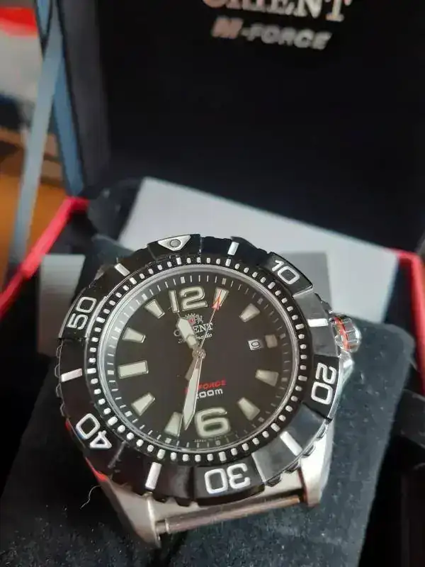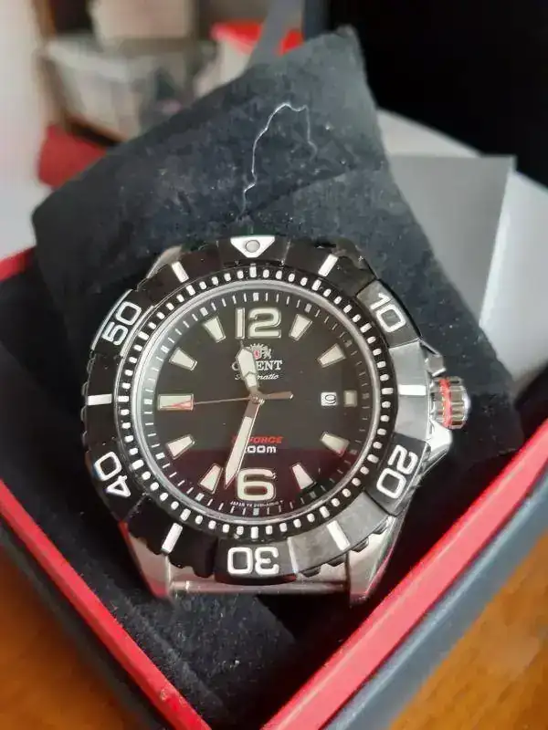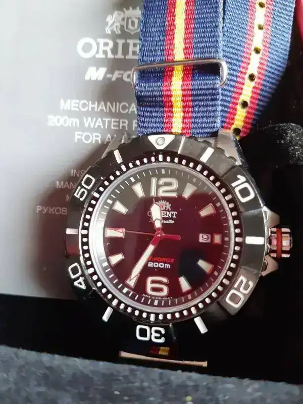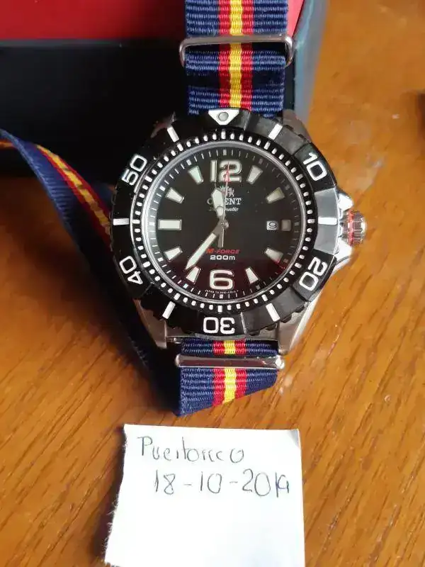 Se trata de un Orient M force Tiranium, de mayo de 2017, apenas usado, impoluto (yo no le veo nada), con caja y documentación. Recordar que este reloj es un relojazo, pues cumple iso de impermeabilidad y de golpes (mirar el video), además de diver. Ya esta descalogado, y comentar que el titanio es de densidad cinco (maxima dureza) y cristal de zafiro. La correa de caucho y esta algo cortada, apenas, y yo que tengo una supermuñeca me sirve de sobra, asi que no pasa nada. No obstante pongo esta nato de moda en el pack