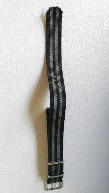 Como pequeño extra, incluyo una correa NATO negra con lineas grises, a la que sólo daba uso con este reloj.